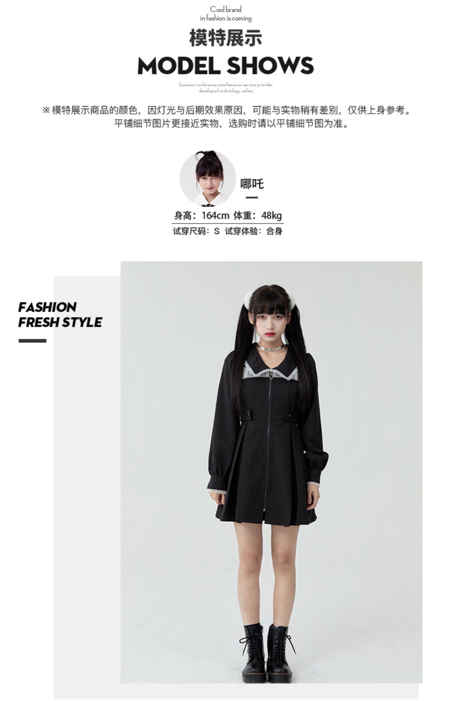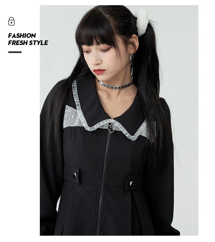 pinksaviorレースカラーデコレーションウエストラブバックル秋冬シンラブジッパーワンピース オータム 秋物 ウィンター 冬物 PSTB21024728441
