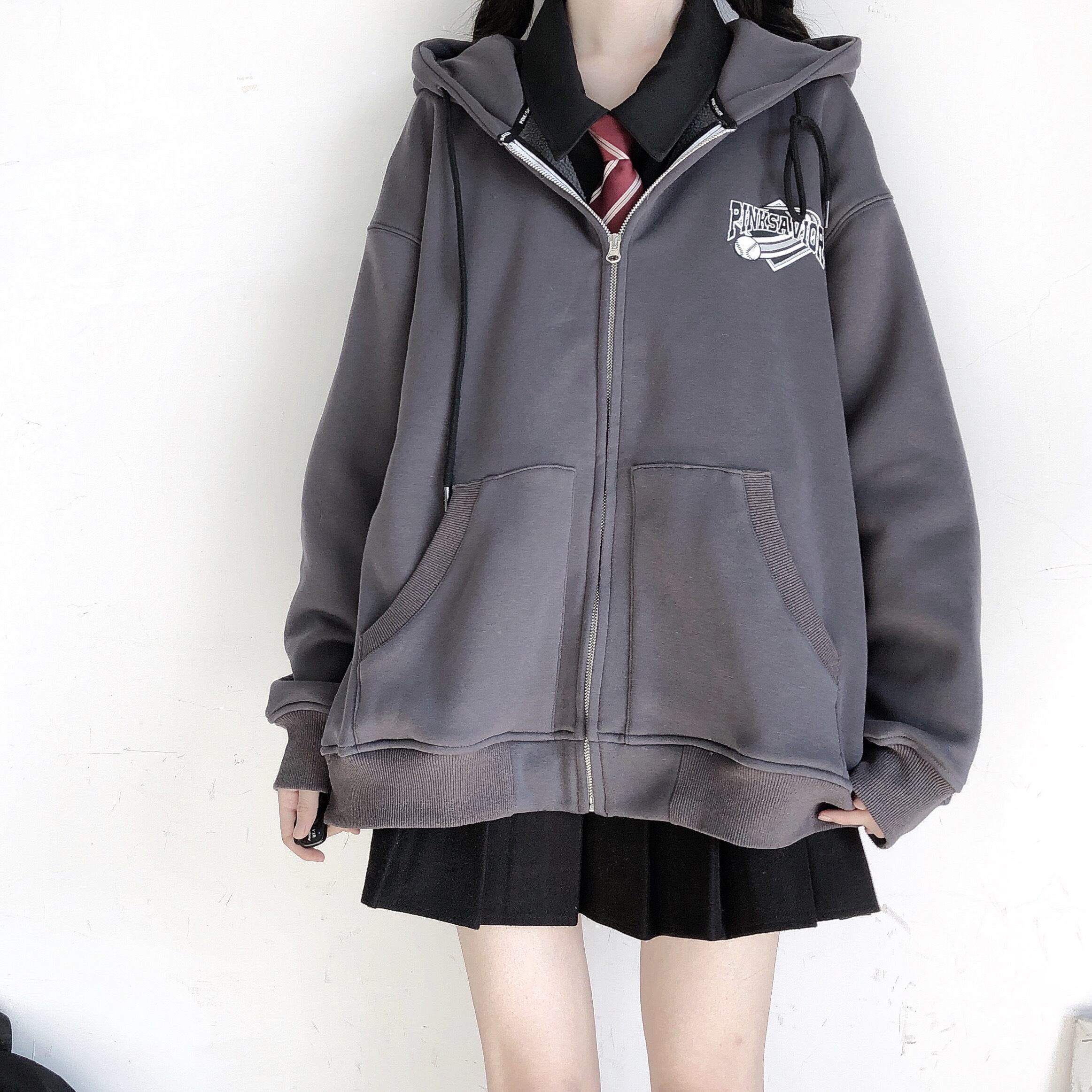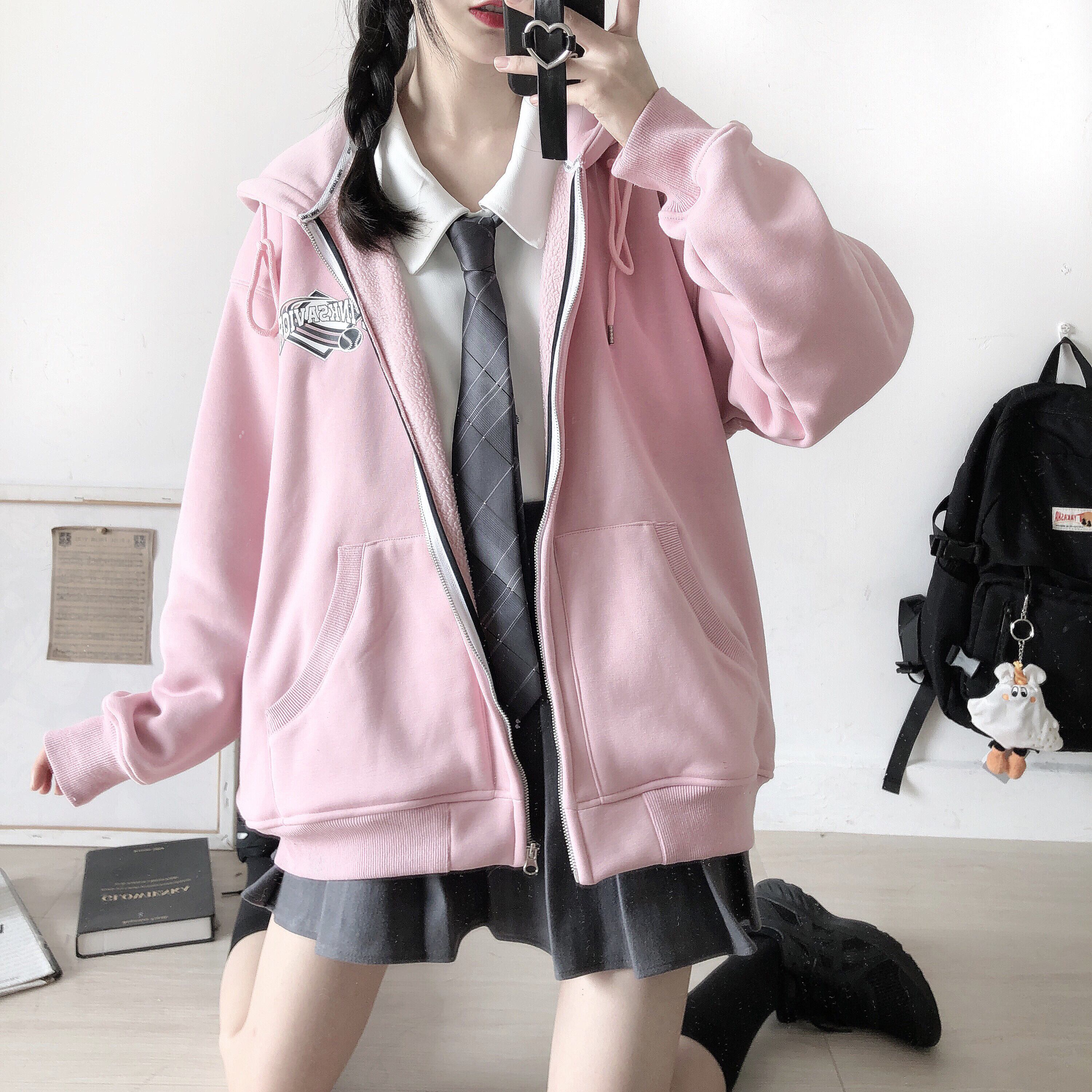 pinksavior野球部clポーラーフリース秋のジッパーフード付き暖かいジャケットの後 オータム 秋物 PSTB15968565092