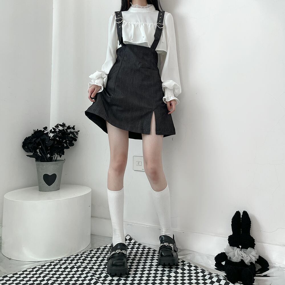 pinksaviorパールデコレーションデニムラブサスペンダースカートスプリットオータムスーツ 秋物 真珠 PSTB39222941744