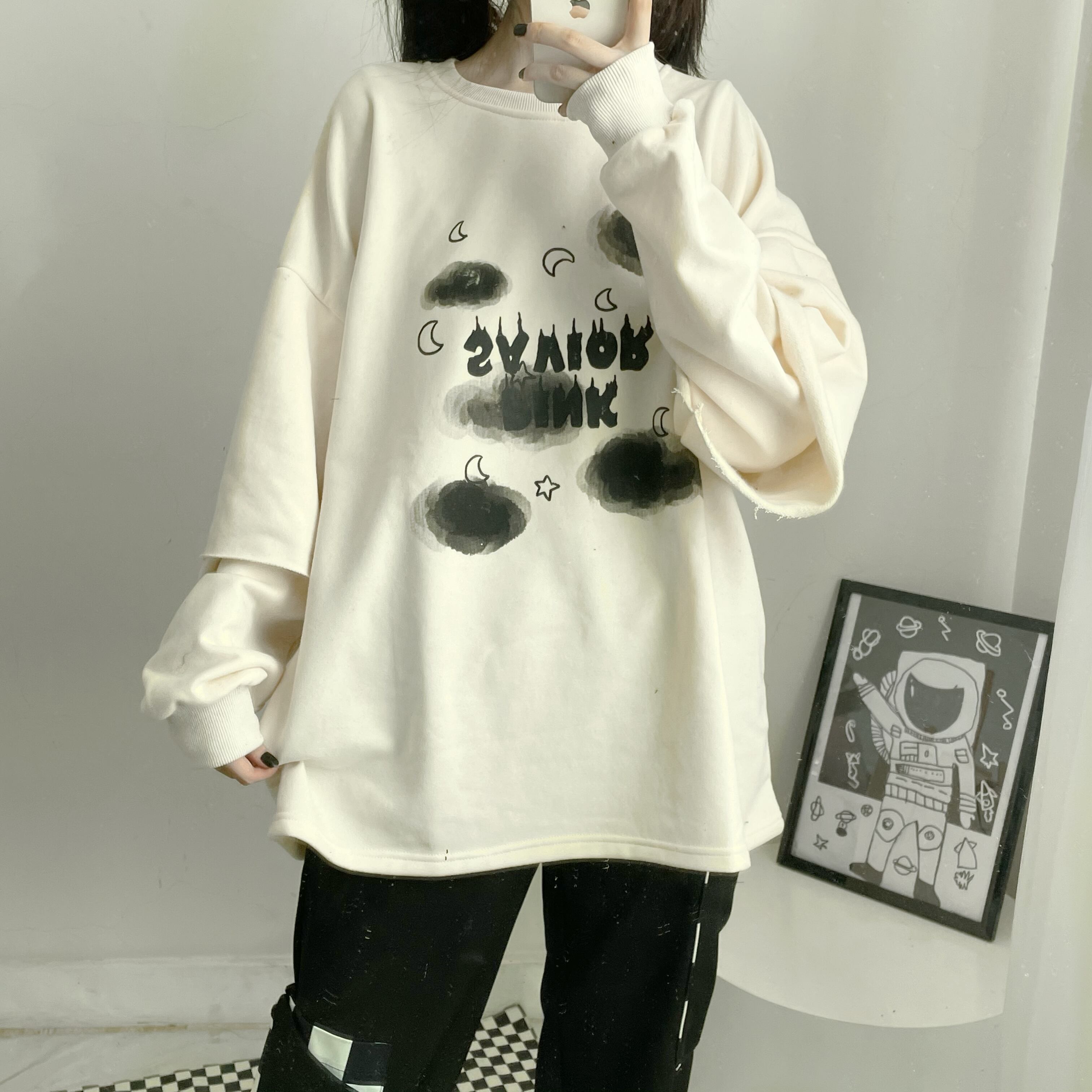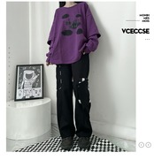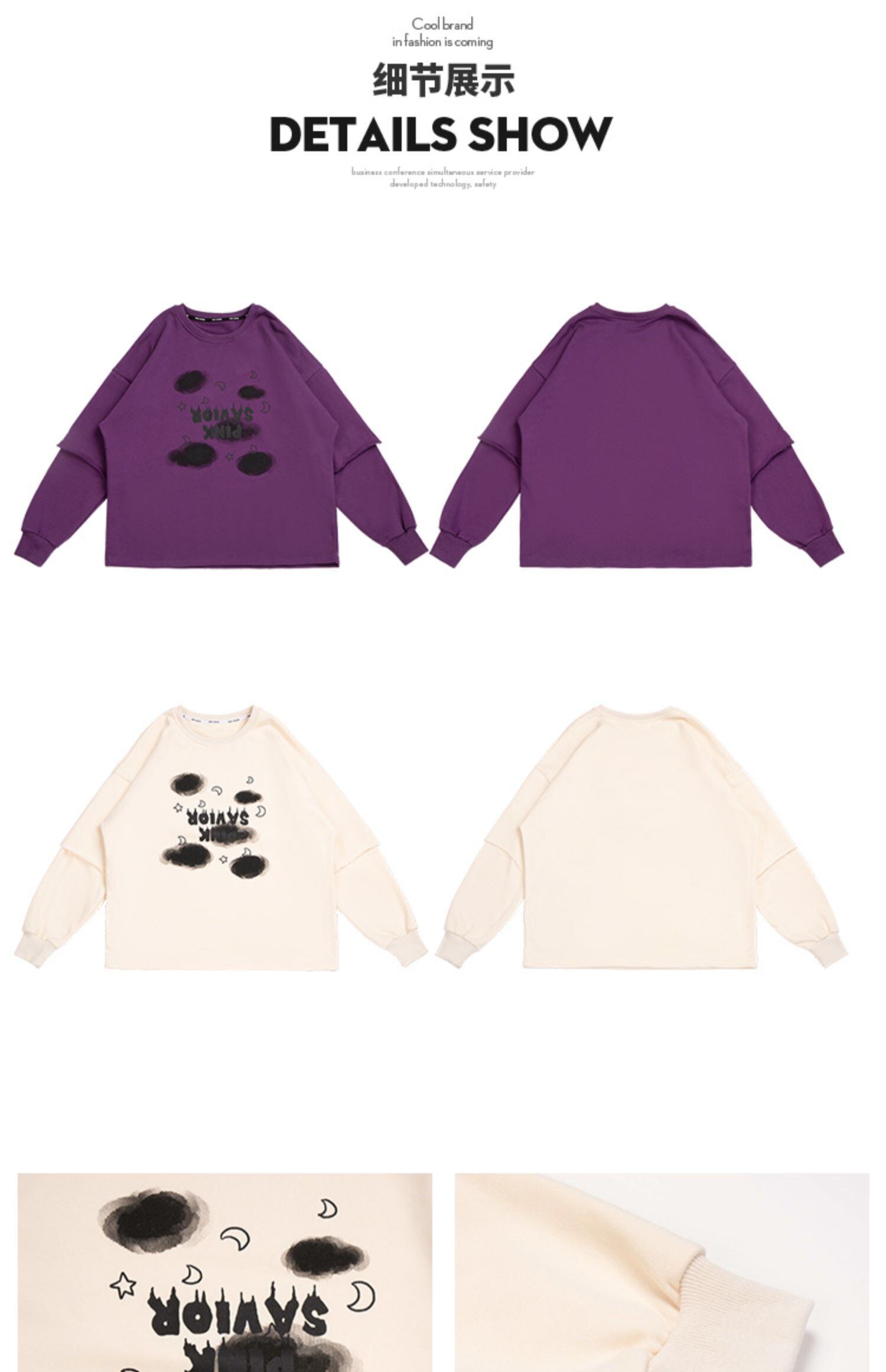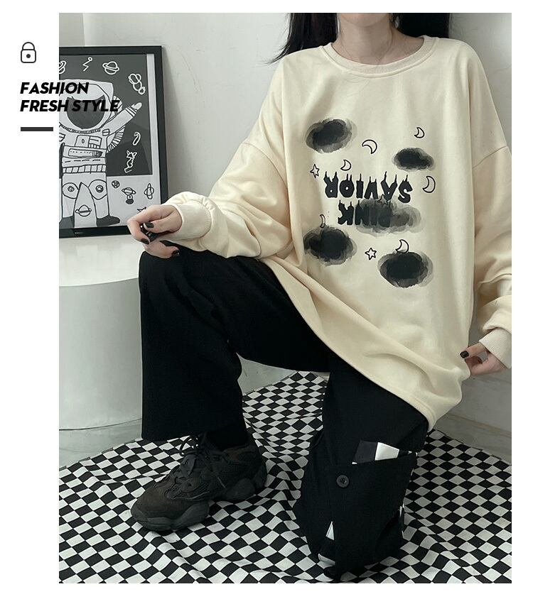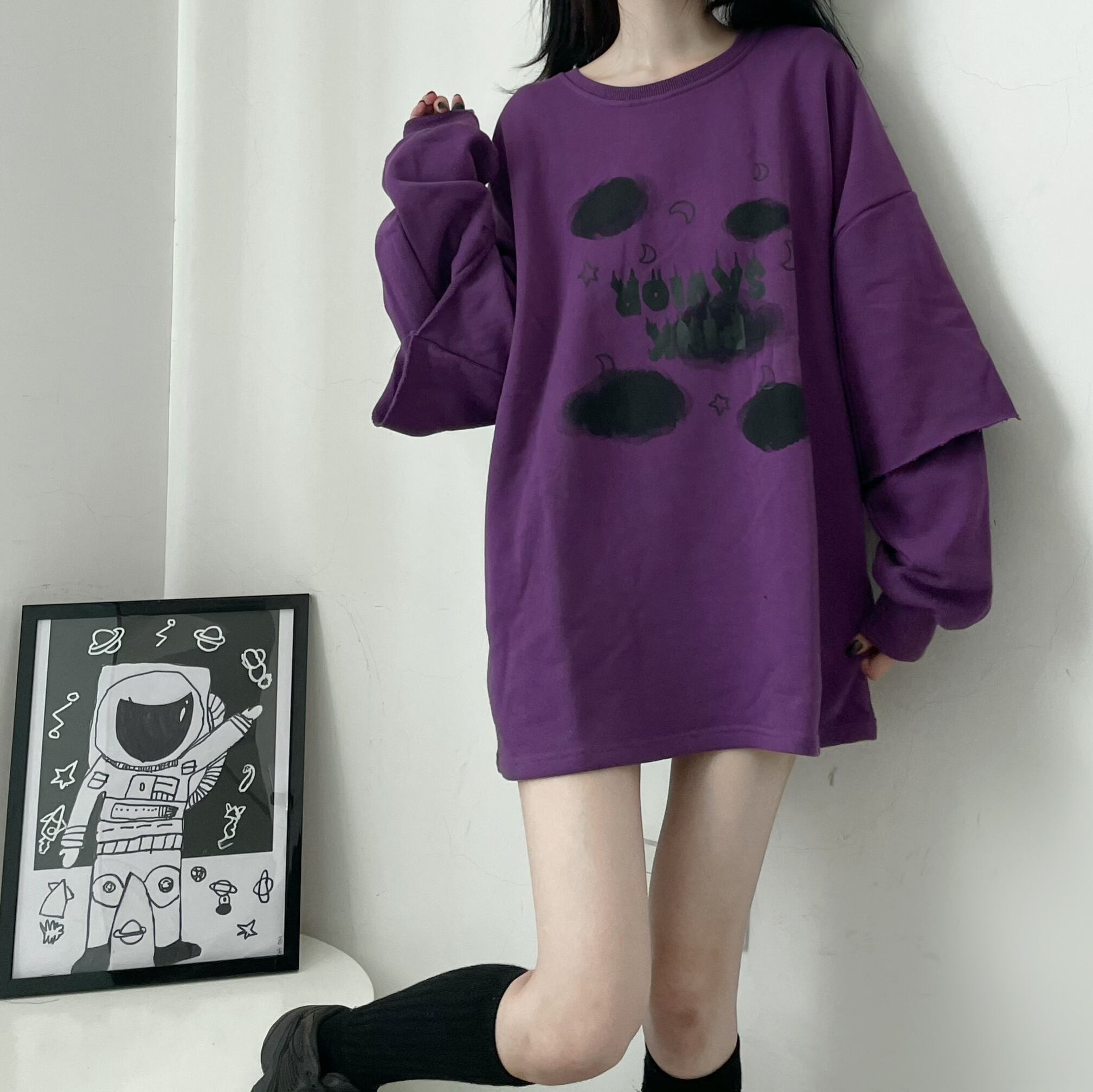 pinksaviorプリントラウンドネックルーズプルオーバー長袖秋冬ドリームパープルウォームウォームイエローブラウスミッシングセーター ロング オータム 秋物 ウィンター 冬物 Oネック PSTB72933464002