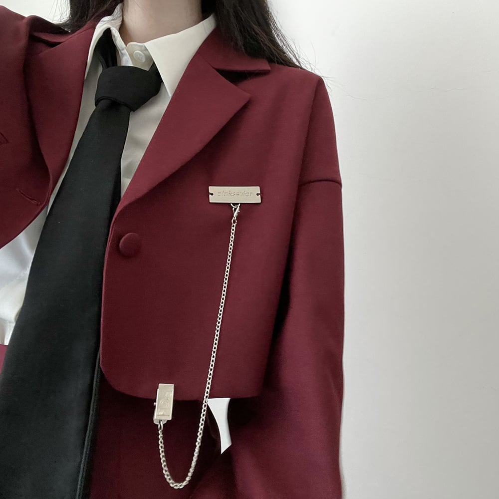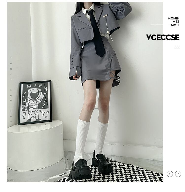 pinksavior9月9日0時気質赤とグレーの秋冬ショートジャケットハーフスカートシャツスーツ レッド オータム 秋物 ウィンター 冬物 PSTB76858751203