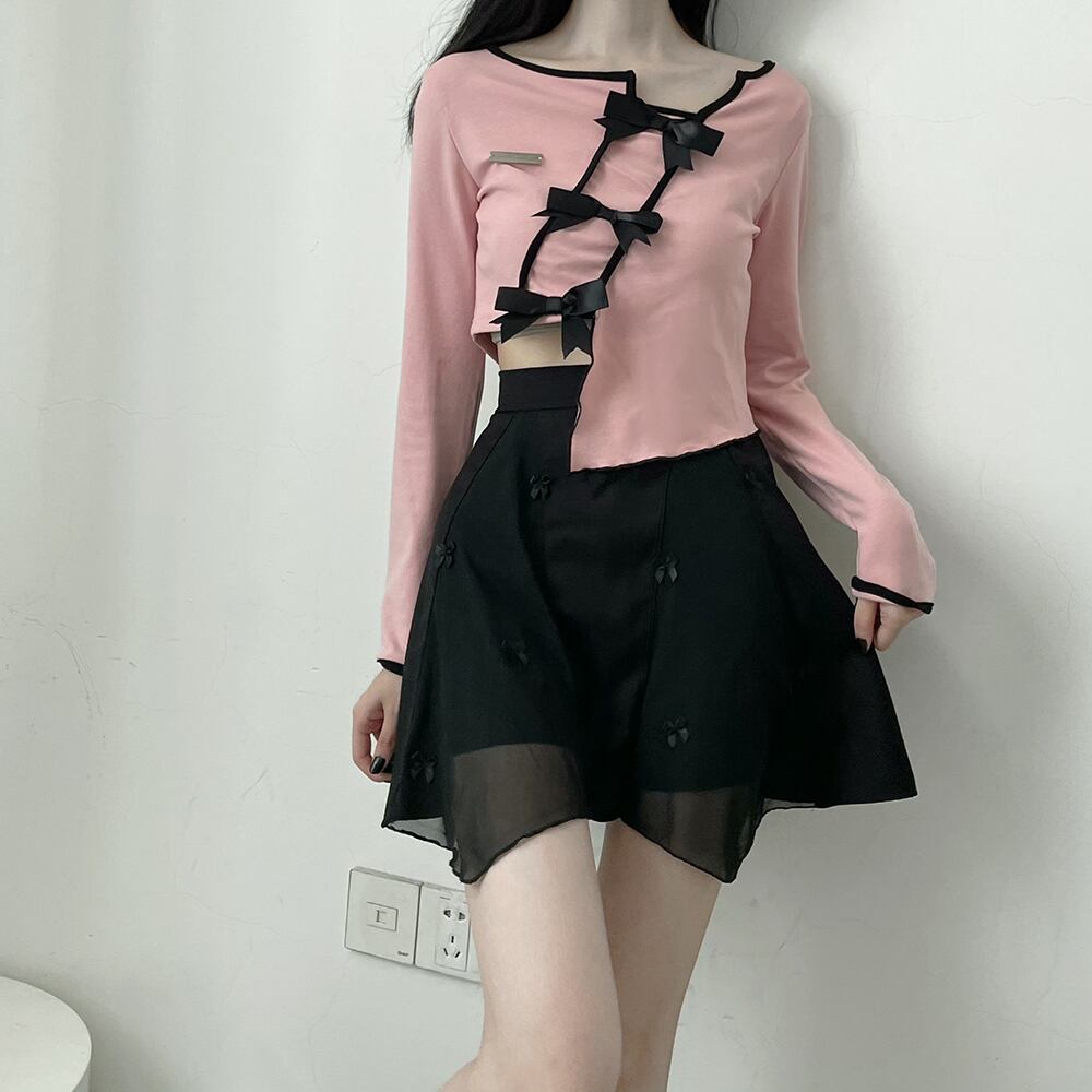 色:ピンクトップスポット,ブラックボウハーフスカート入荷