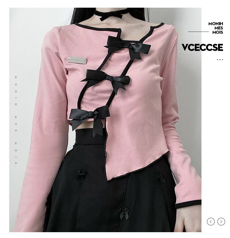 pinksavior9月9日0時純粋な欲望ピンクの黒い弓の装飾スリムな不規則な裾+小さな黒いドレス ブラック リボン ピュア PSTB12644432365