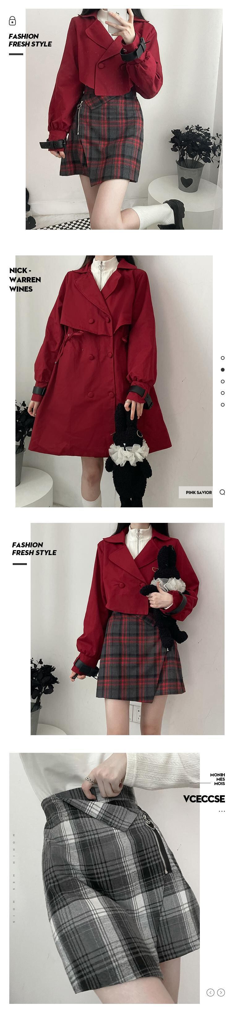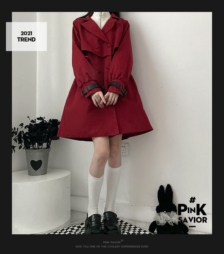 pinksavior黒と赤の長短のデザインはウインドブレーカーの薄い秋の立体版でした ショート ロング レッド ブラック オータム 秋物 PSTB30732774824