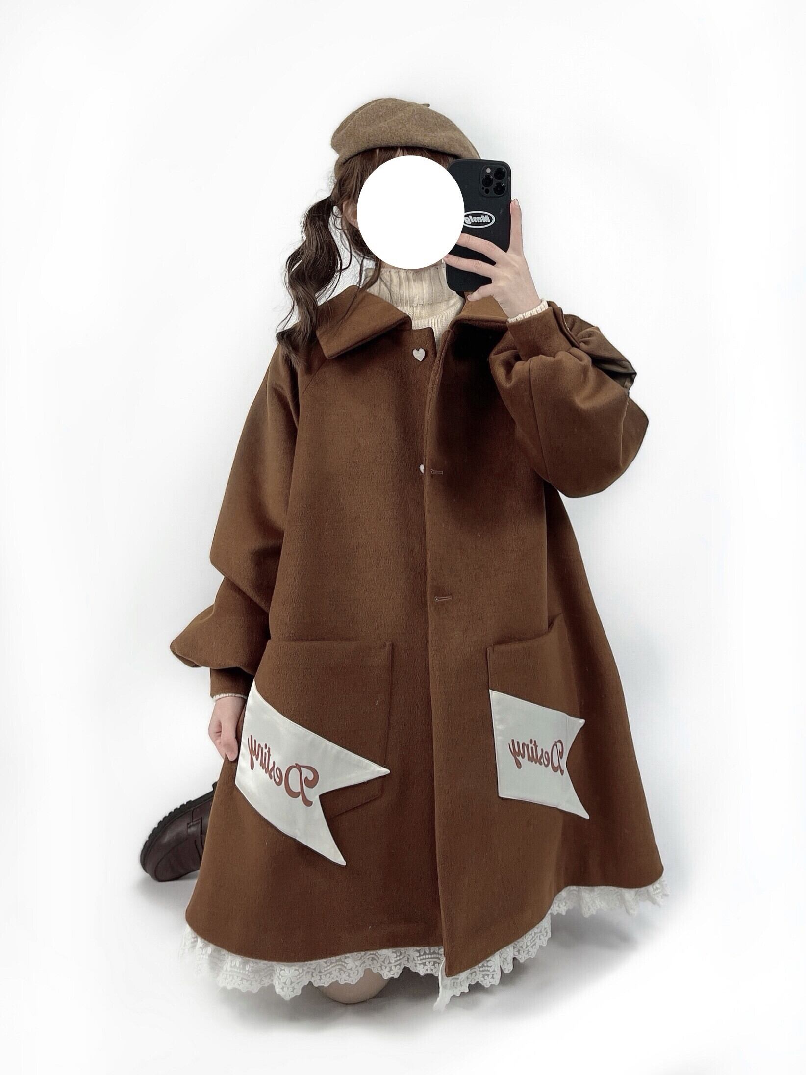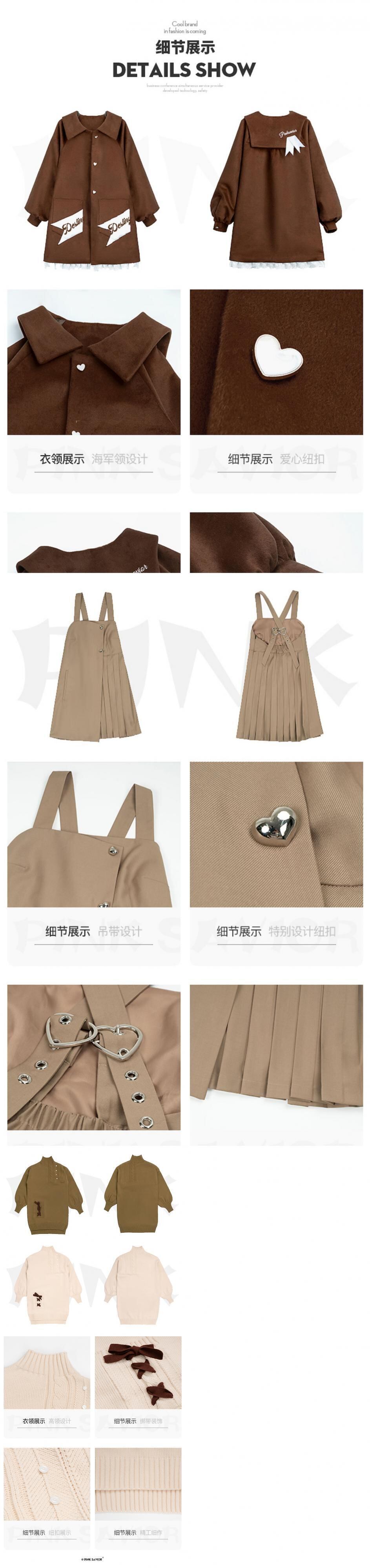 pinksavior栗茶キルティングコットンミドル丈パフスリーブセータースーツ PSTB76736293961