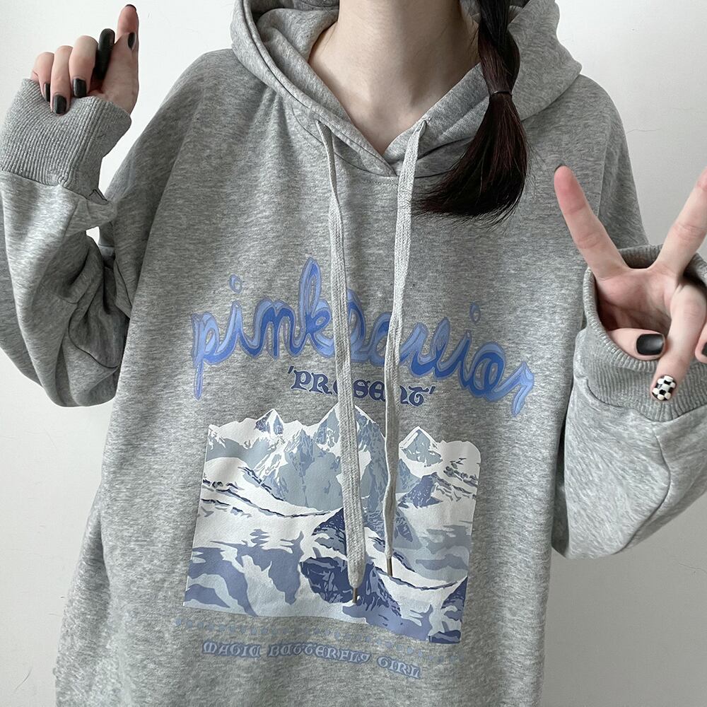 pinksavior9月9日0時秋冬クラウドホワイト&スノーマウンテンアッシュプリントフード付きカジュアルスリムセーター オータム 秋物 ウィンター 冬物 PSTB9654009207