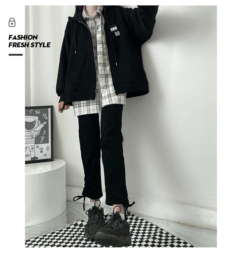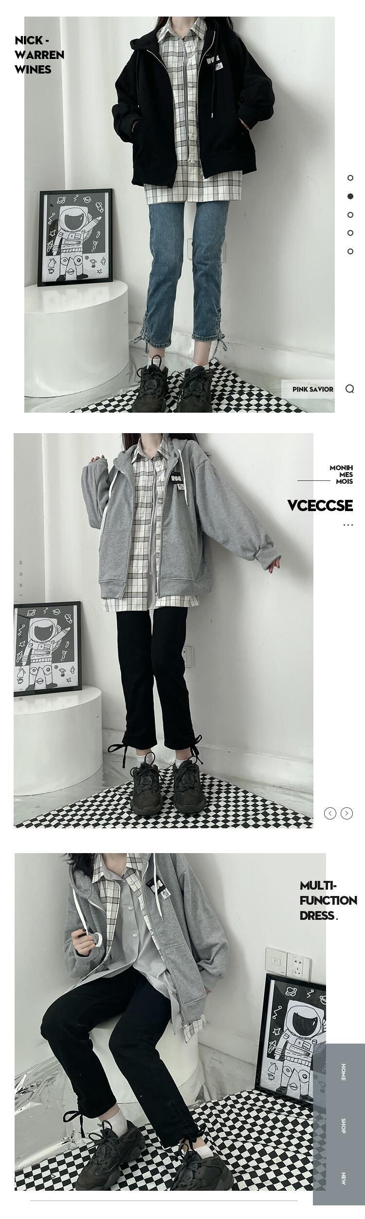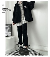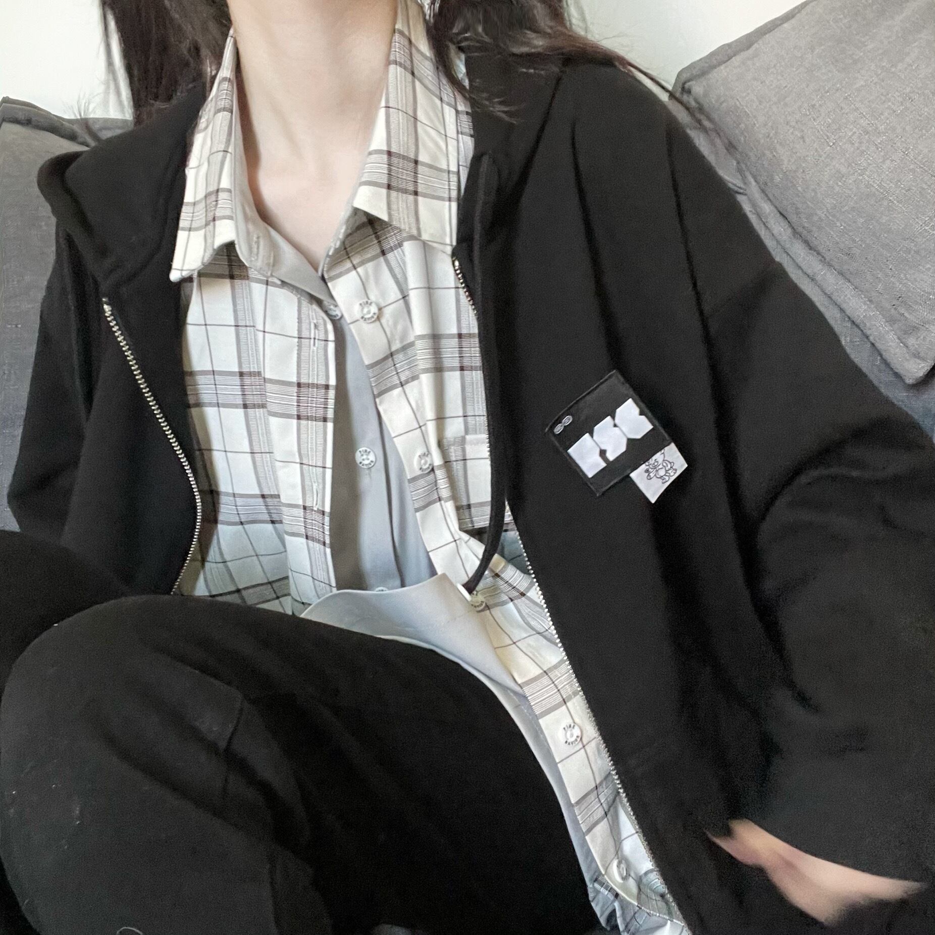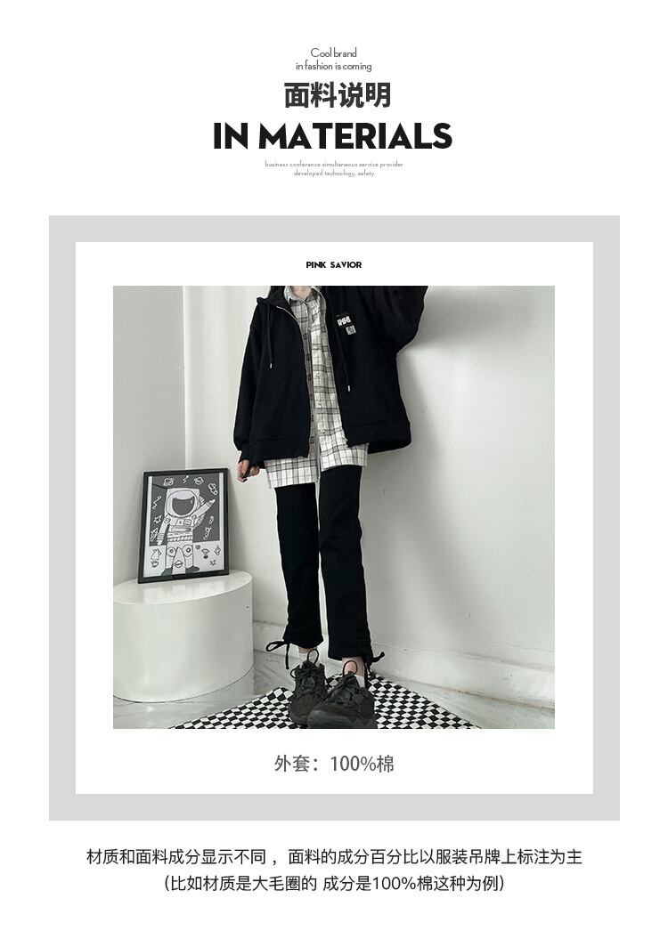 pinksavior黒とグレーのバッジ取り外し可能で積み重ね可能なラッキーベアビッグランタンスリーブジッパーフード付きジャケット ブラック PSTB12841552179