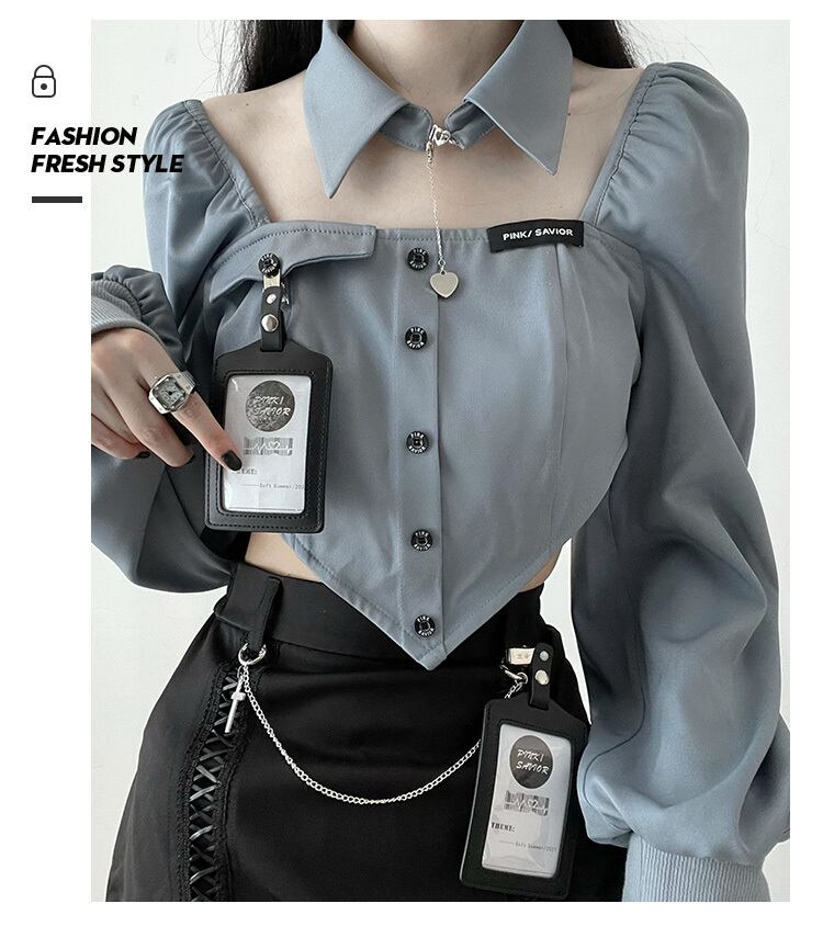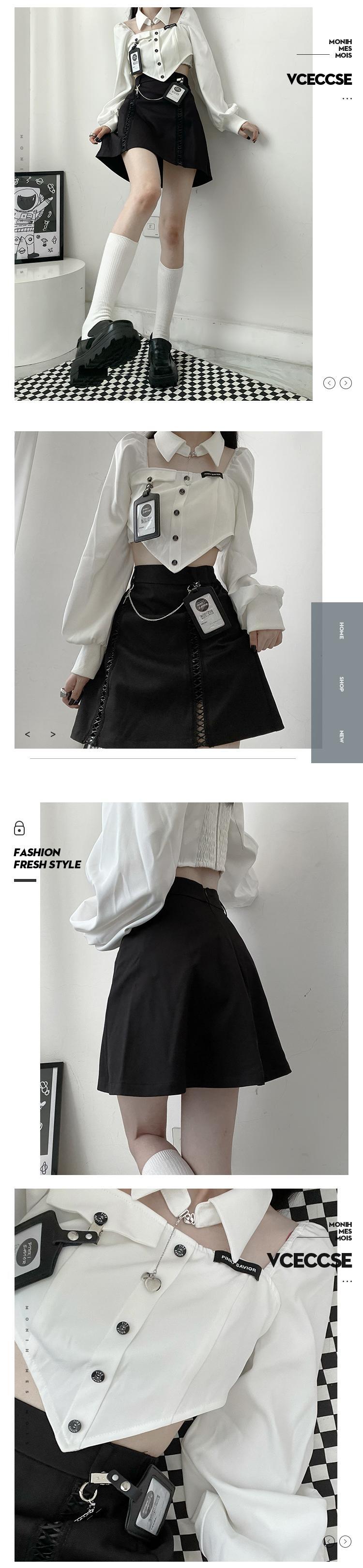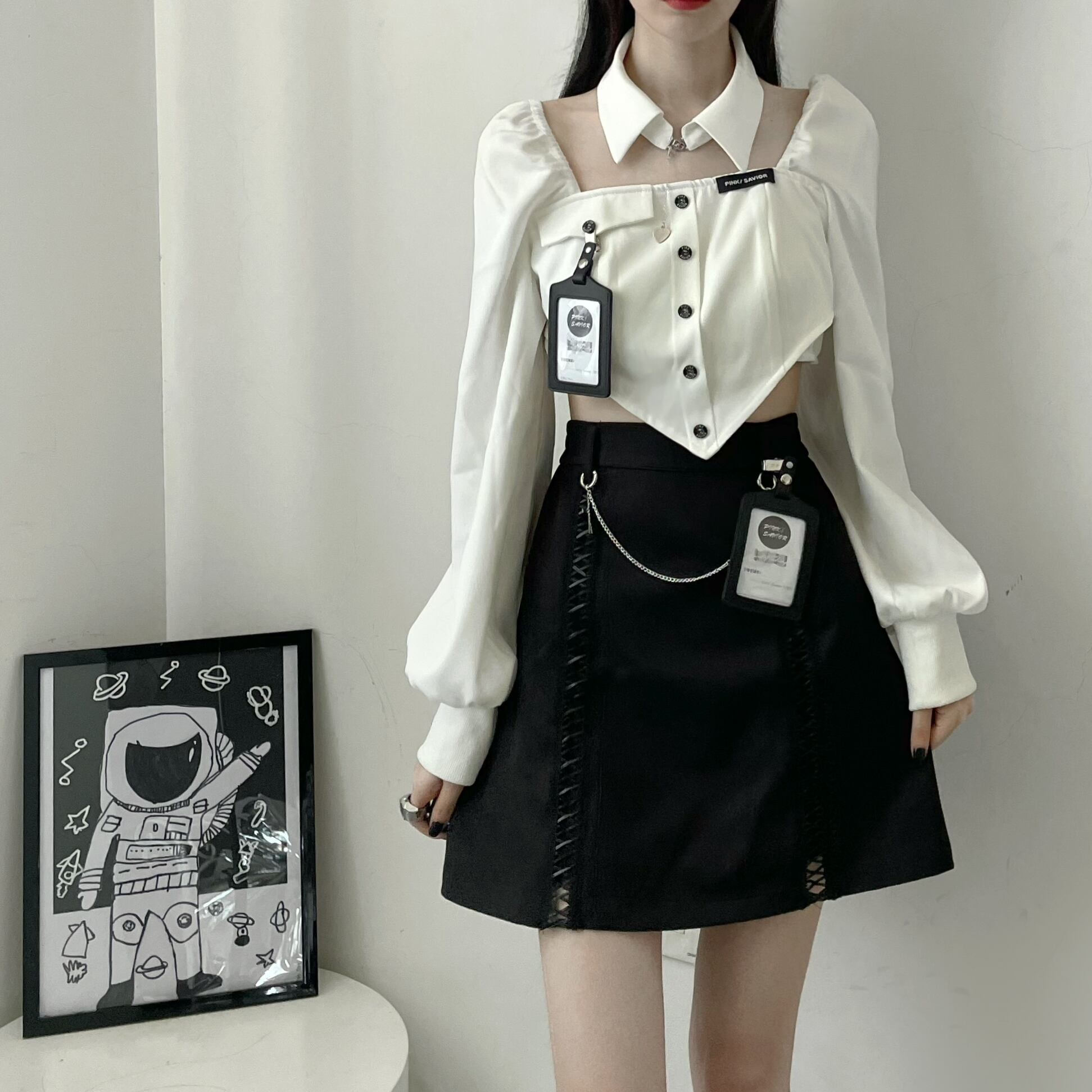 色:ブルーショートフード付きジャケット+襟なしレザーバッジ,ホワイトショートフード付きジャケット+襟なしレザーバッジ,白い三角形の裾のシャツ+襟、革のバッジを送る,青い三角形の裾のシャツ+襟、革のバッジを送る,黒のネクタイスカート,バックルサスペンダースカートが大好き