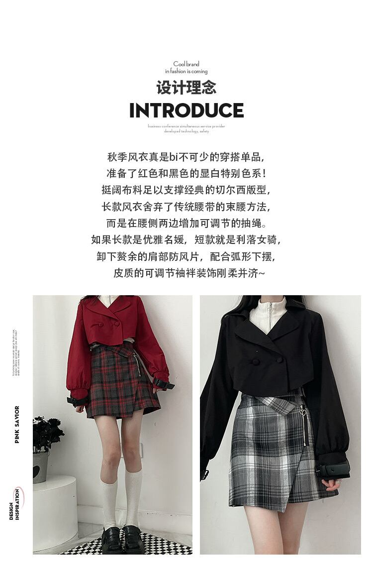 pinksavior黒と赤の長短のデザインは、ウインドブレーカーの薄い秋の立体版です ショート ロング レッド ブラック オータム 秋物 PSTB21245670881
