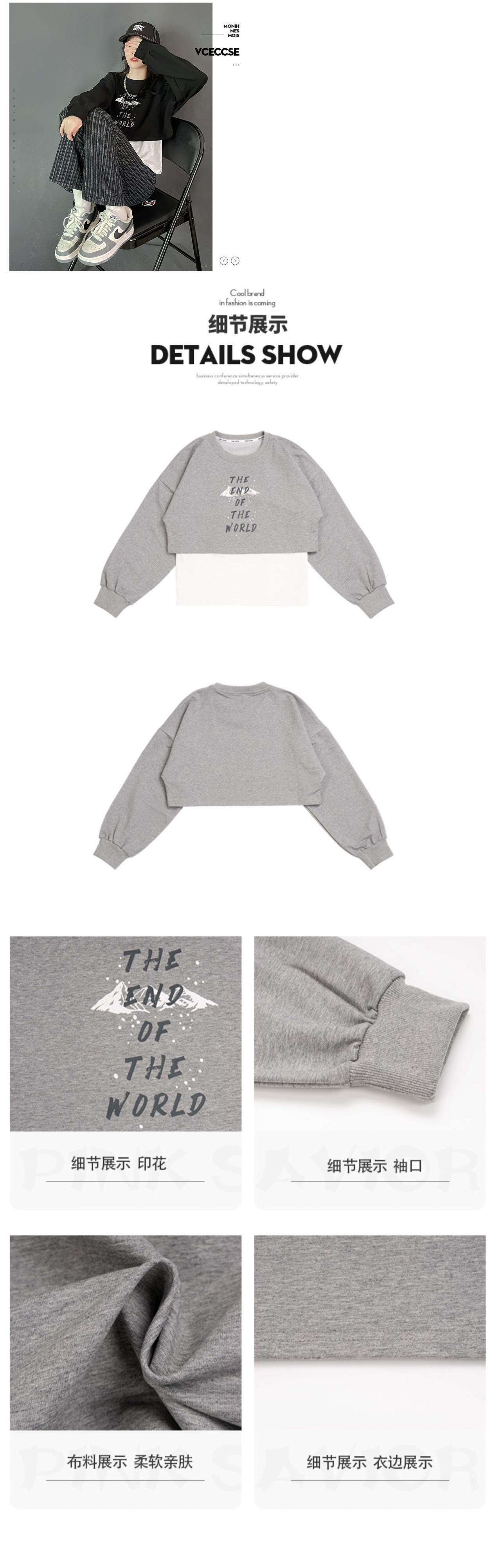 pinksavior黒とグレーのツーピース秋のコロケーションスノーマウンテンプリント細いウエストセーター ブラック オータム 秋物 PSTB99843505565