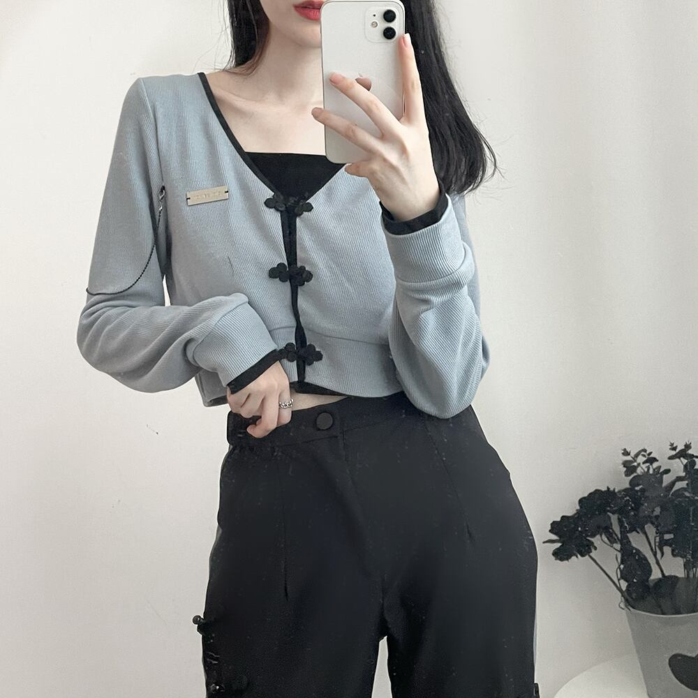 pinksavior Floating Dream、Fake Two-piece Knitted Chest Wrapped Chain Top Autumn2021 ピンク オータム 秋物 チェーン PSTB75710722960