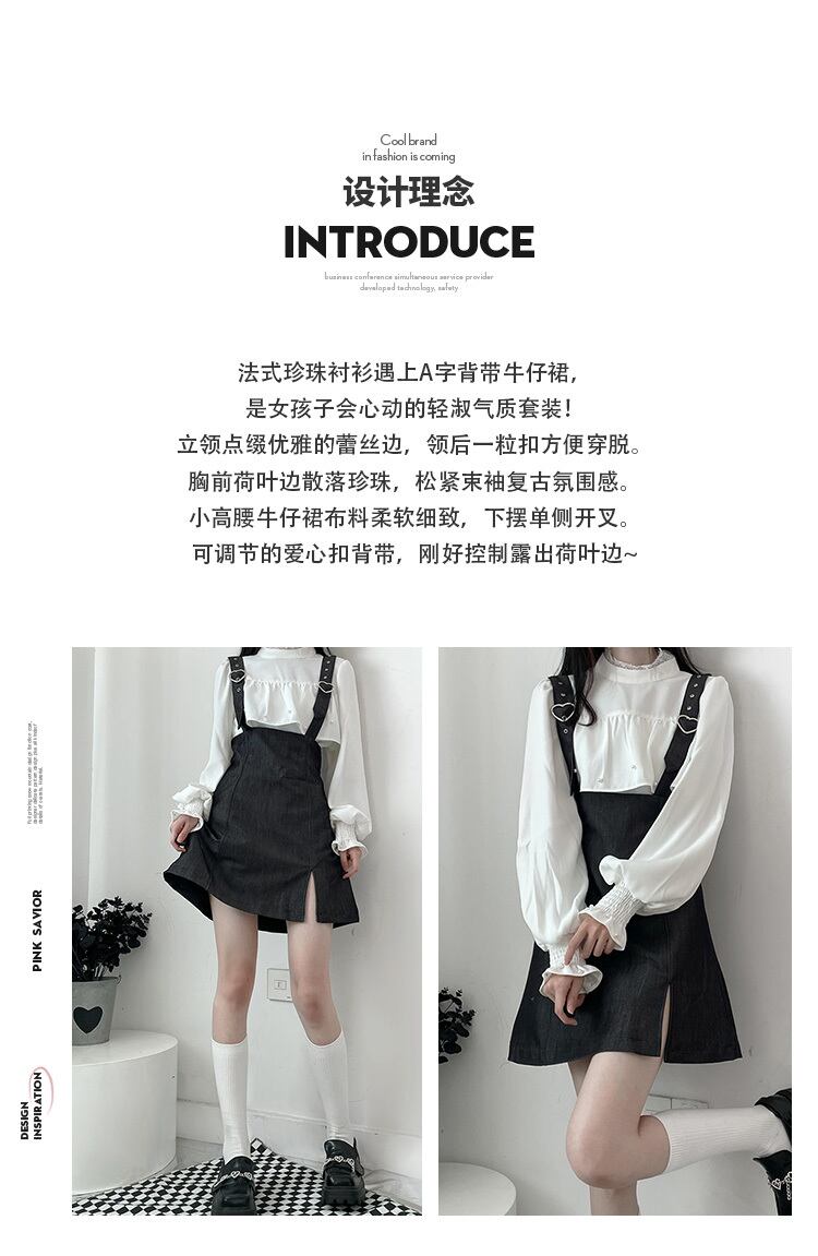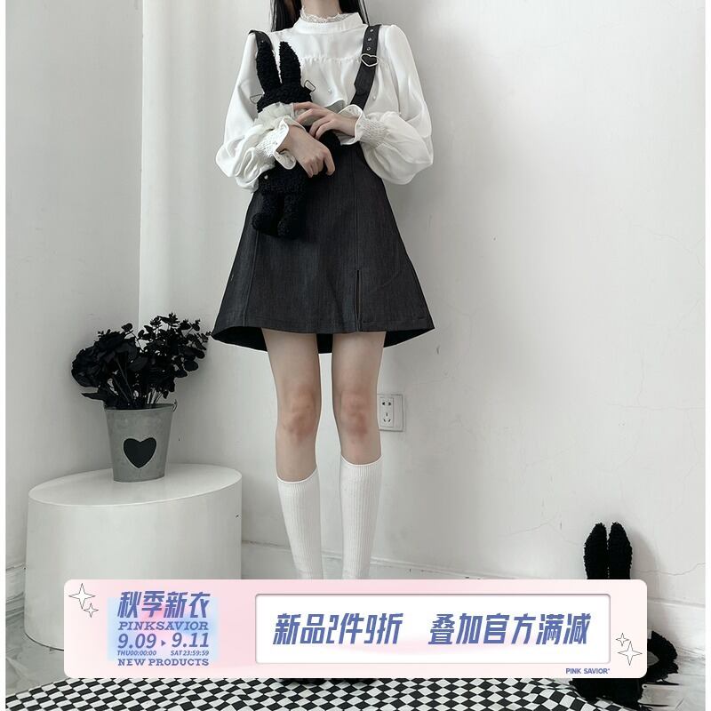 pinksaviorパールデコレーションデニムラブサスペンダースカートスプリットオータムスーツ 秋物 真珠 PSTB52805005150