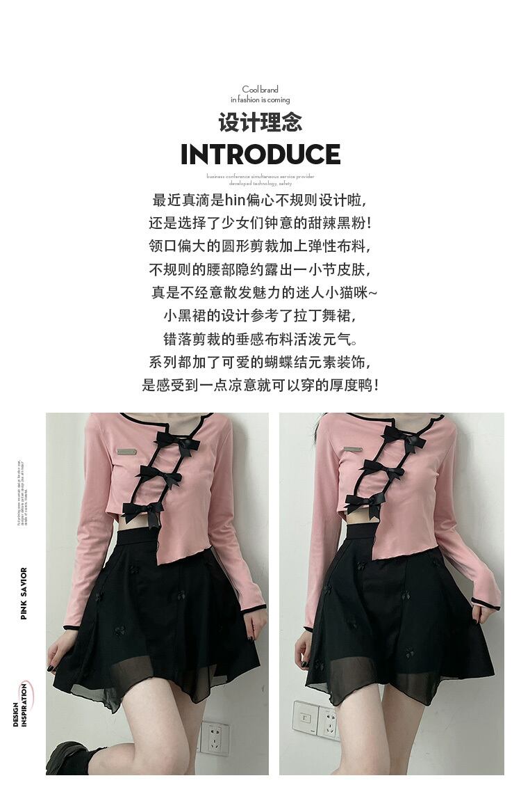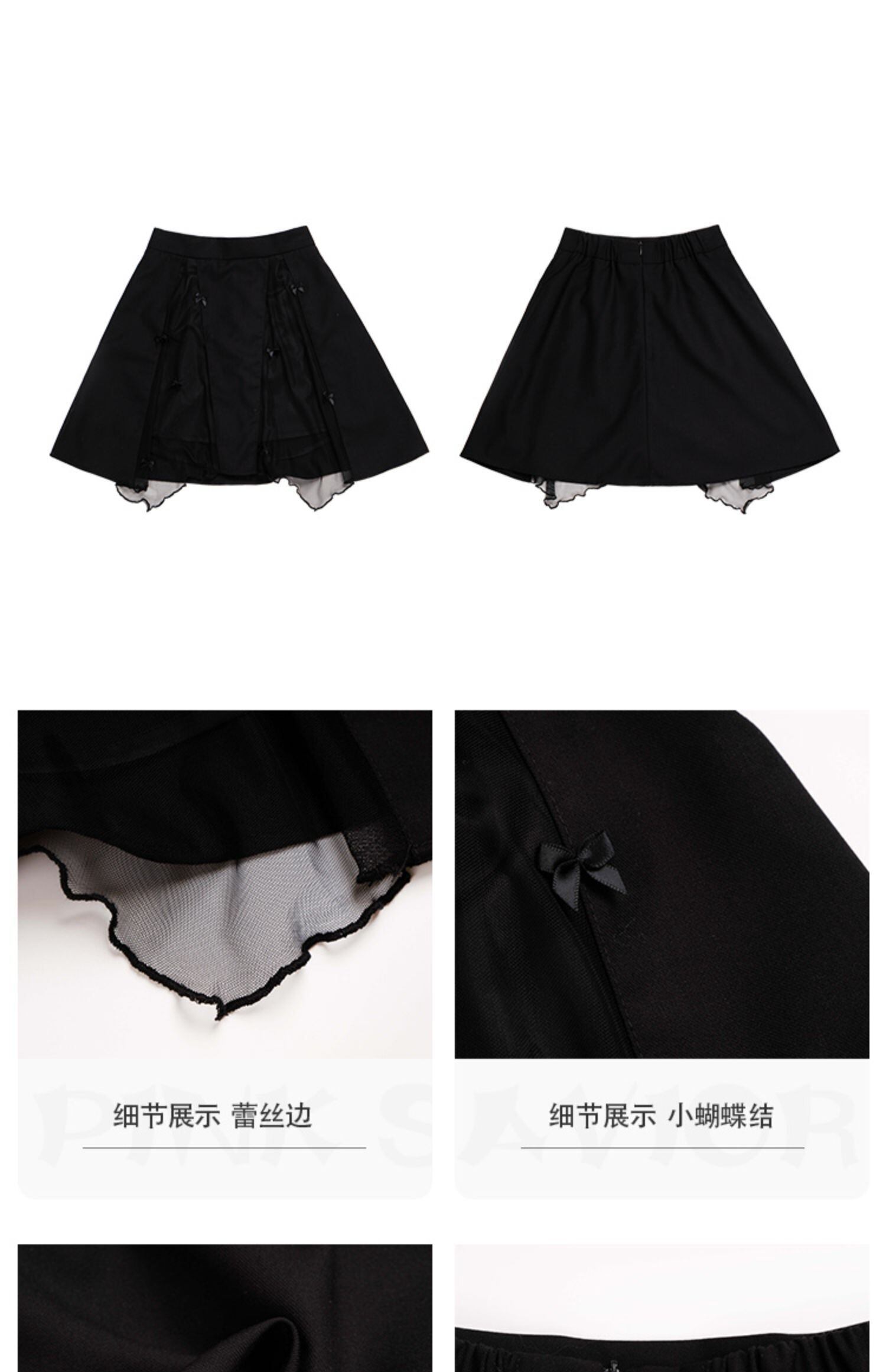 pinksavior9月9日0時、純粋な欲望ピンクの黒い弓の装飾スリムな不規則な裾+小さな黒いドレス ブラック リボン ピュア PSTB86228395887