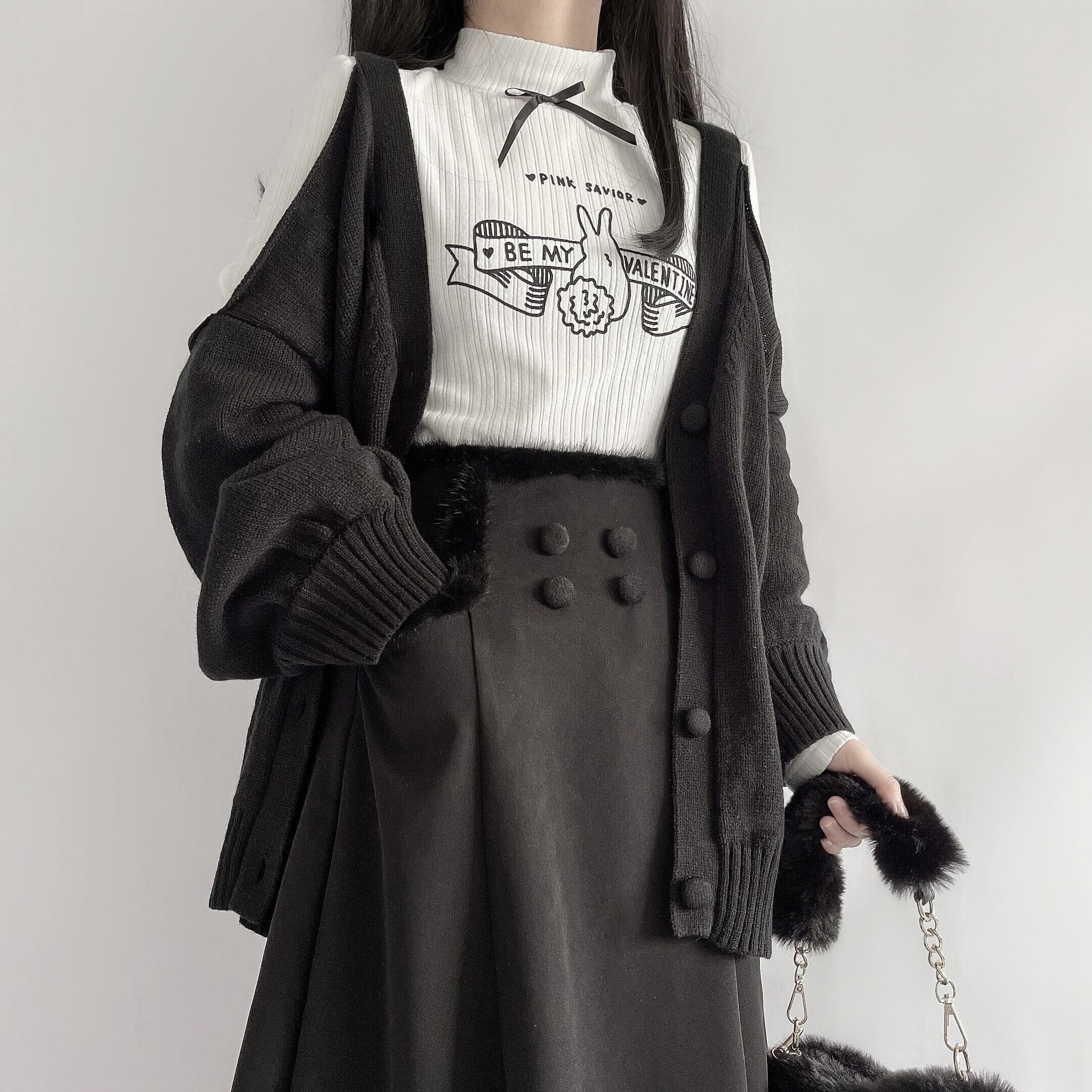 pinksavior良いウサギの赤と黒の特別な友人のセータージャケットのデザイン2021年秋冬 レッド ブラック オータム 秋物 ウィンター 冬物 PSTB52843240741