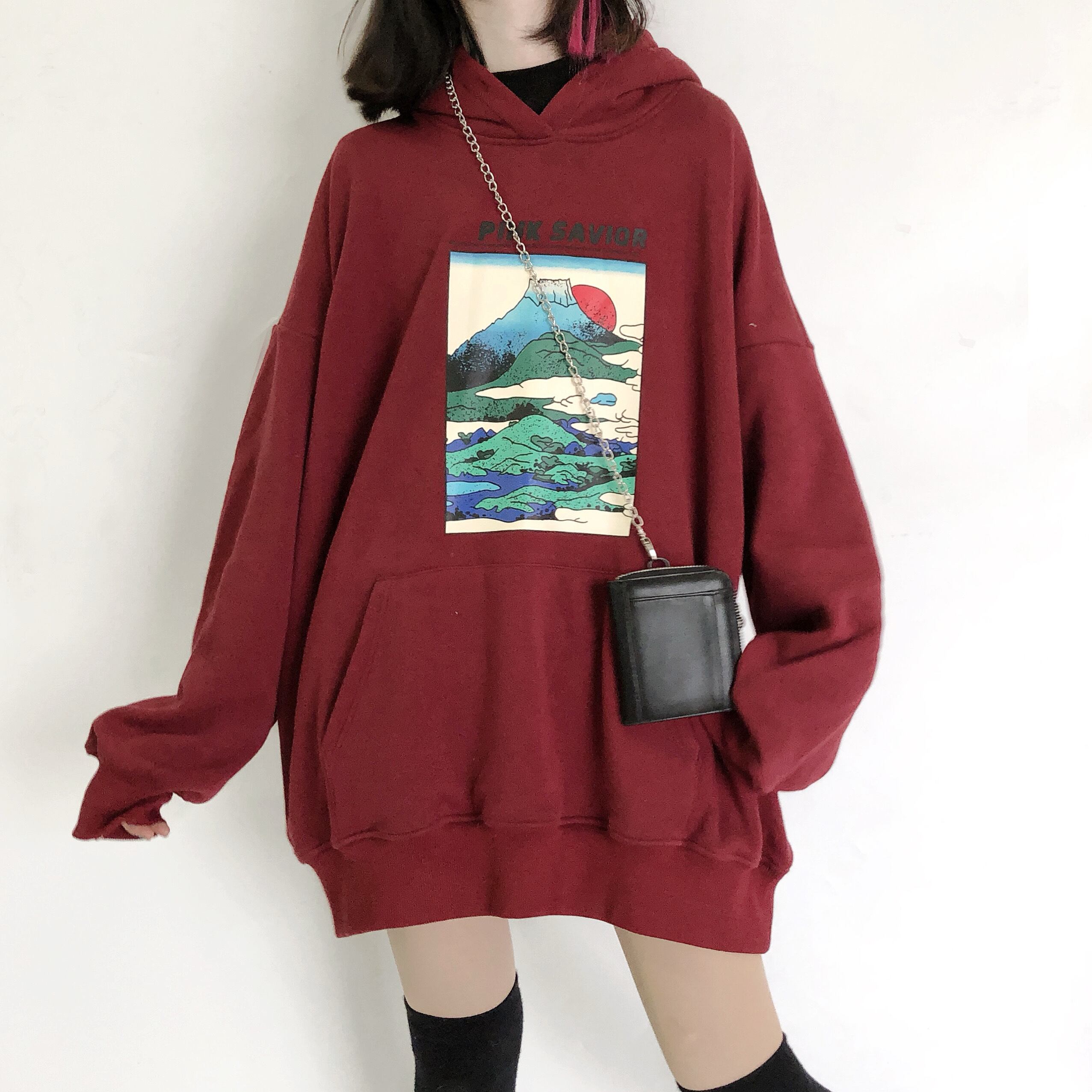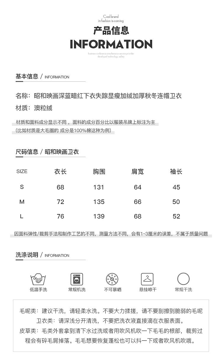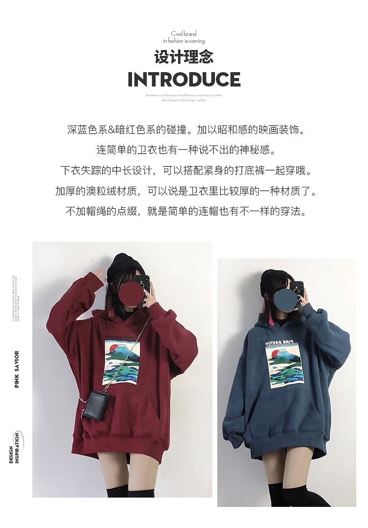 pinksavior昭和映画ダークブルーダークレッドボトムスがなく、薄くてベルベットが厚くなった秋冬のフード付きセーター オータム 秋物 ウィンター 冬物 PSTB17578885901