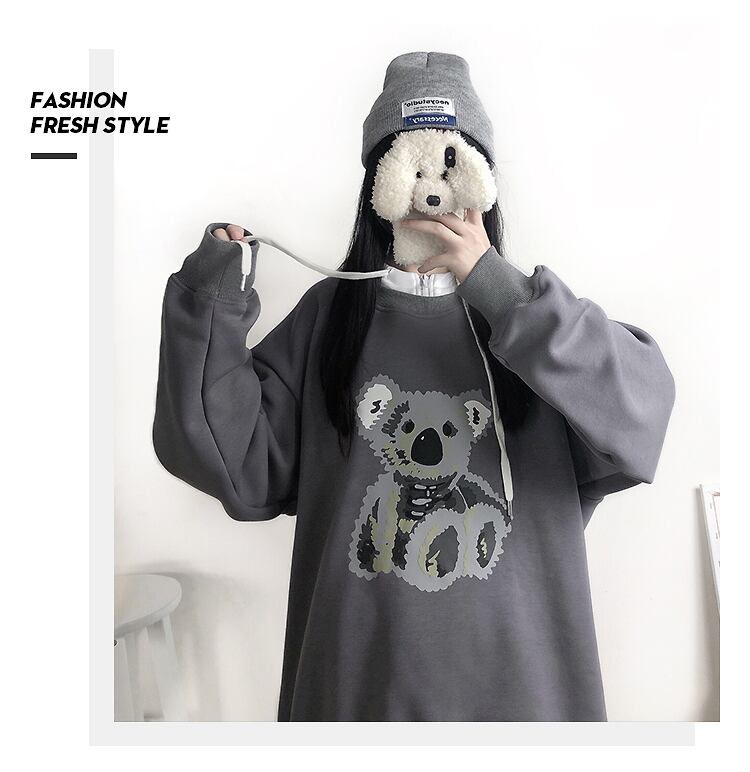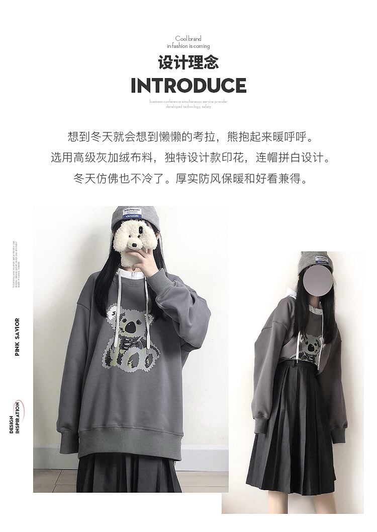 pinksaviorグレーのステッチとベルベットの秋と冬の暖かいコアラデザインのフード付きセーター オータム 秋物 ウィンター 冬物 PSTB29438082571