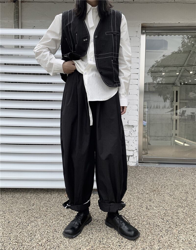 BLACK ANDWHITEダークデザインカジュアルパンツルーズオーバーオールパンツオープンラインデザイン秋冬新作 ホワイト ブラック オータム 秋物 ウィンター 冬物 BWTB56753434717