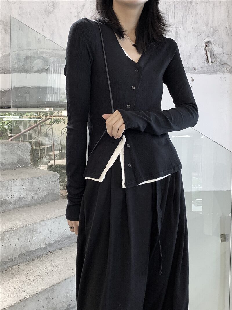 黒と白のダークデザインのフェイクツーピースセーターセーターシングルブレスト長袖 ロング ホワイト ブラック BWTB6590743661