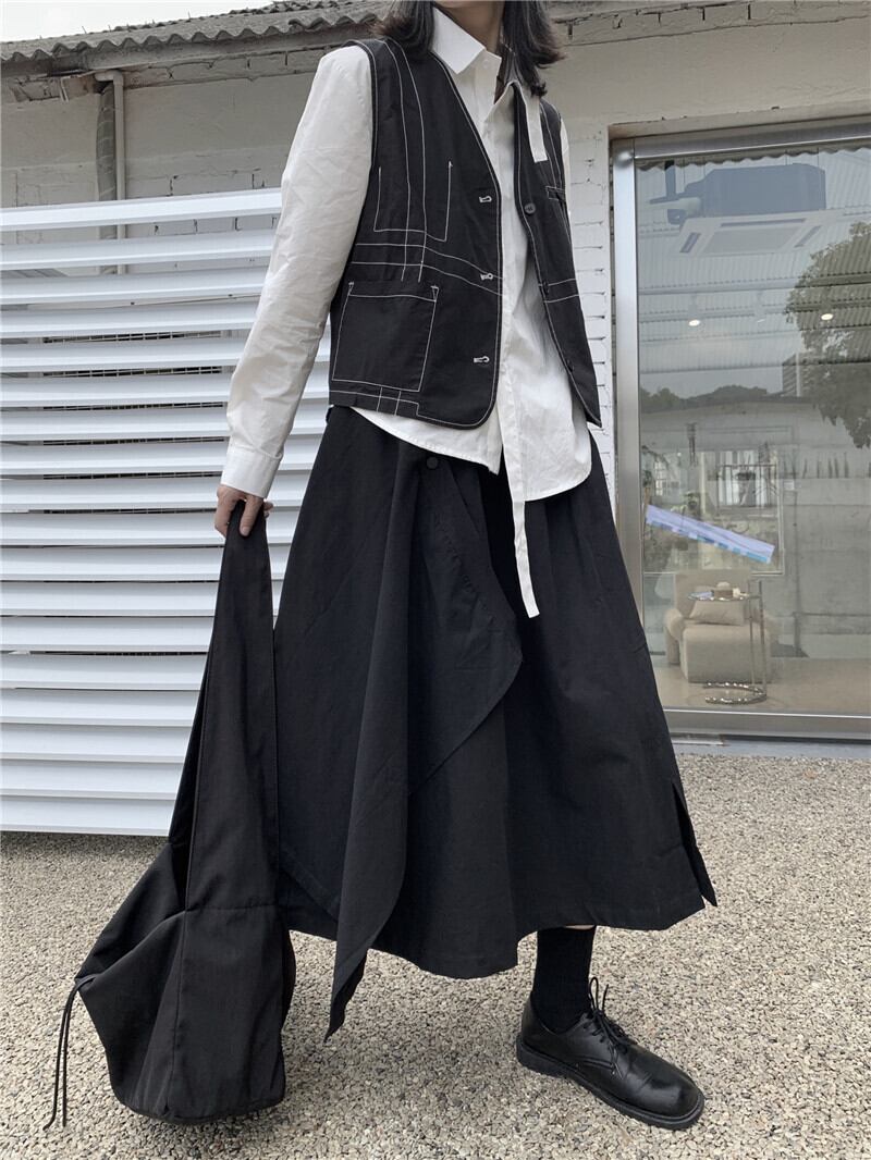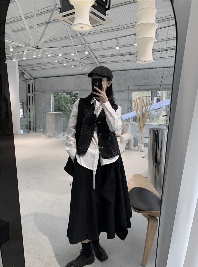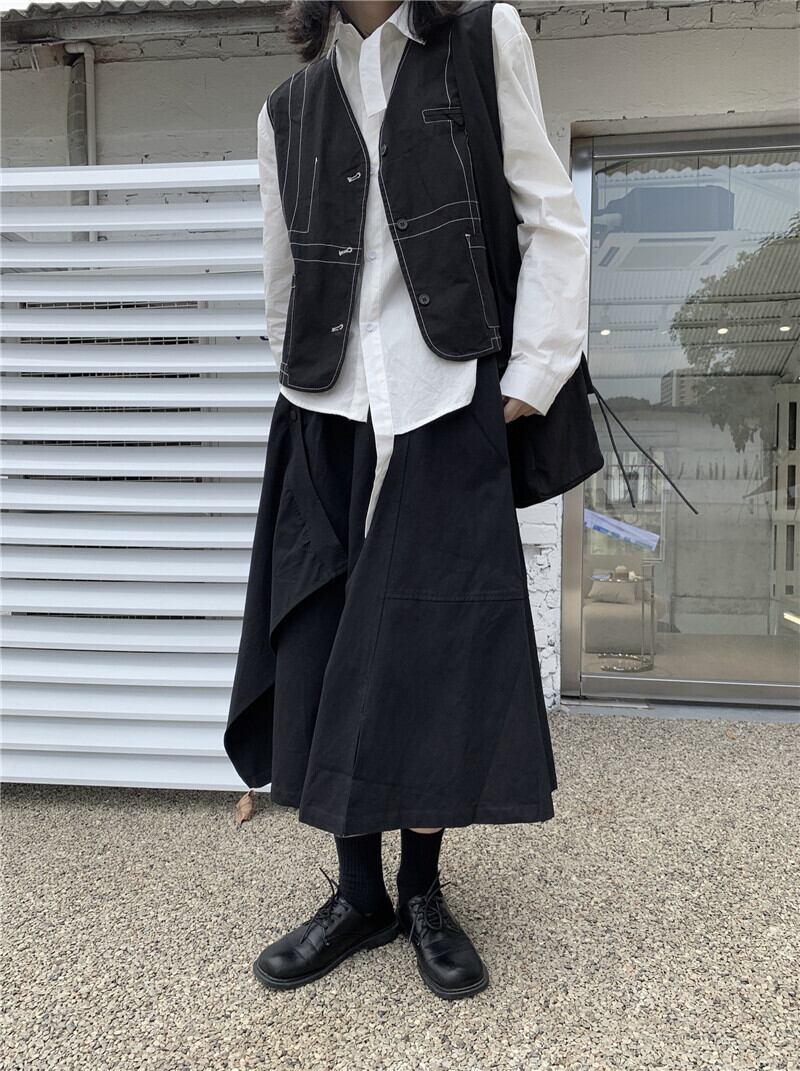 BLACK ANDWHITEダークデザインスカート太めニッチロングスカートAタイプ無地 ホワイト ブラック ソリッドカラー BWTB69247929908