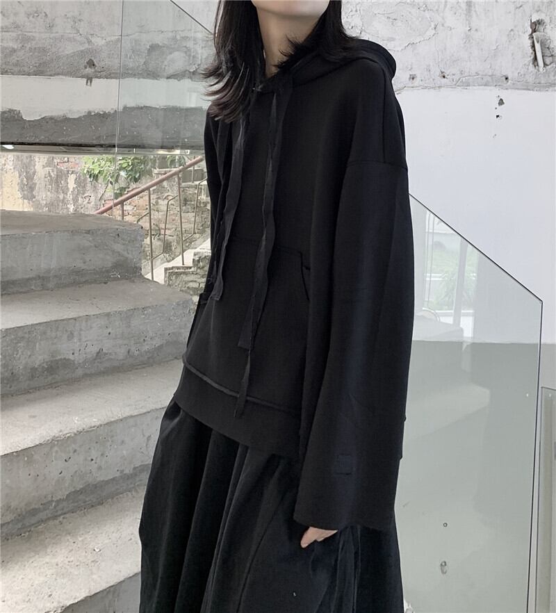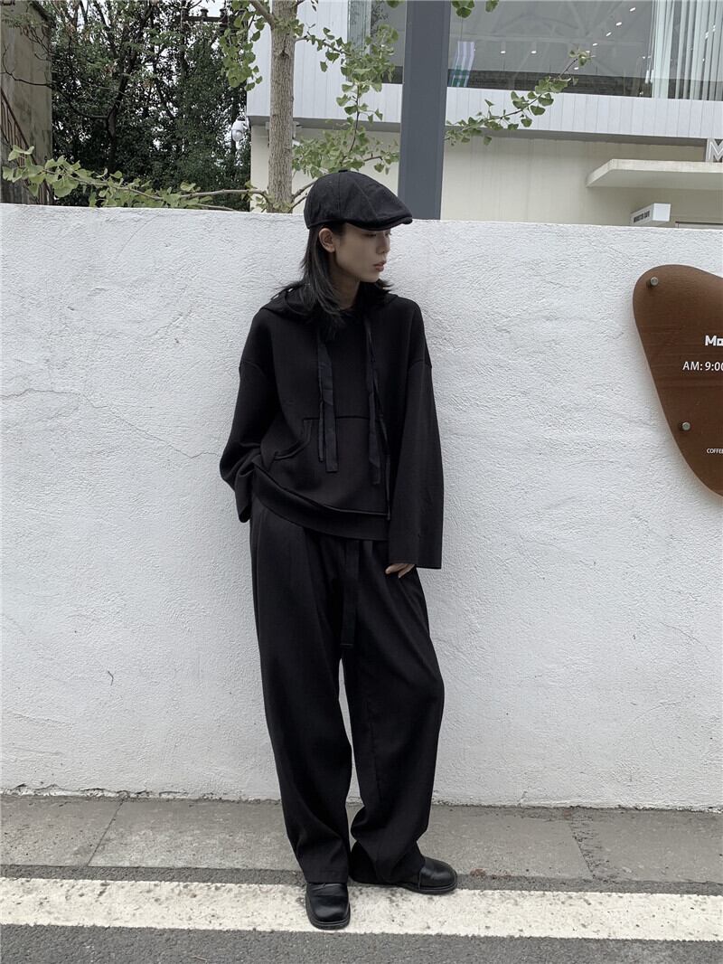 BLACK ANDWHITEダークデザインセータールーズスペースコットン秋冬新作ドローストリングレギュラープルオーバー ホワイト ブラック オータム 秋物 ウィンター 冬物 BWTB68392752562