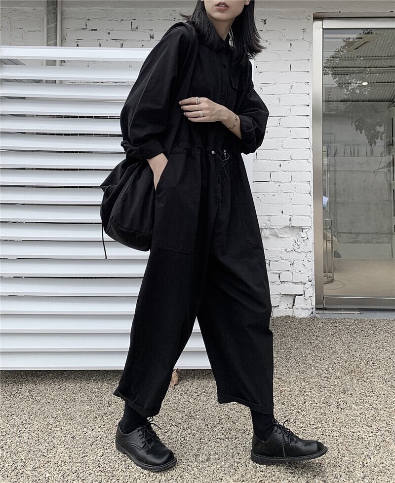 ダークなオーバーオール、カジュアルなパンツ、ゆったりとした男性と女性は厚い生地、新しい秋のデザイン、長袖のオーバーオールを着ています ロング オータム 秋物 BWTB42789682672