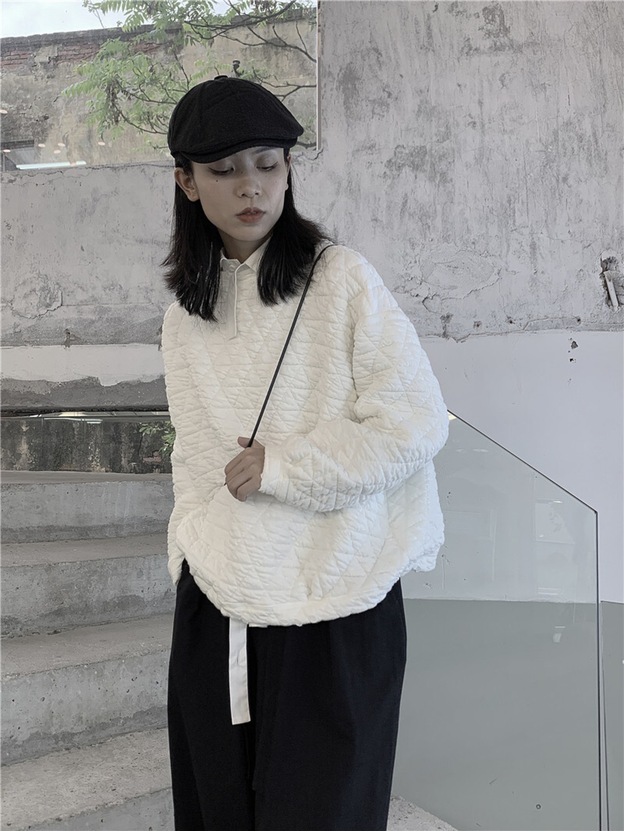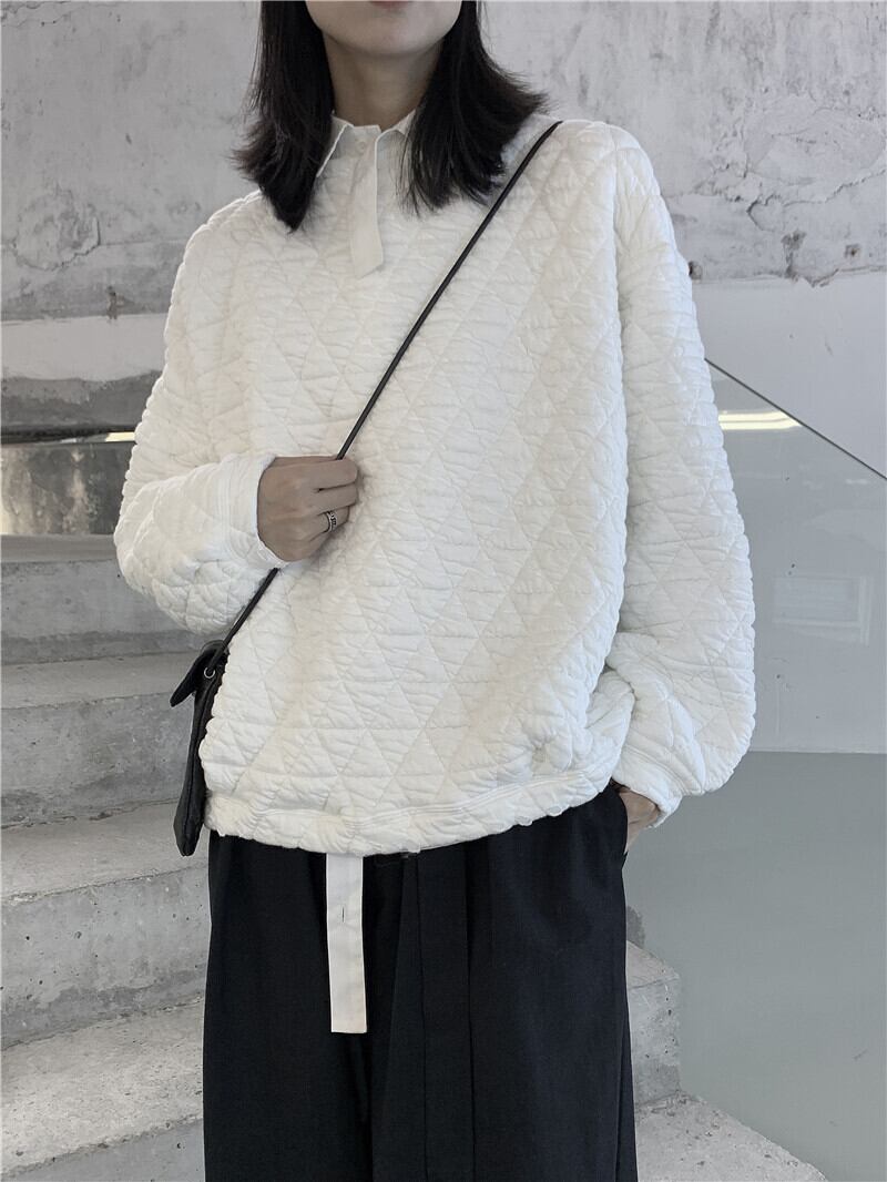BLACK ANDWHITEダークブラックコットンパッド入りジャケットコットンパッド入りジャケット薄片菱形秋冬新ラウンドネックデザインメンズ&レディース ホワイト オータム 秋物 ウィンター 冬物 Oネック BWTB96619281241