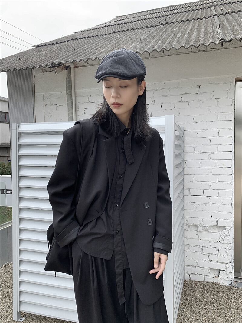 黒と白のダークデザインのスーツスーツルーズラージバージョン秋冬新製品厚手のスーツカラー ホワイト ブラック オータム 秋物 ウィンター 冬物 BWTB15130324483