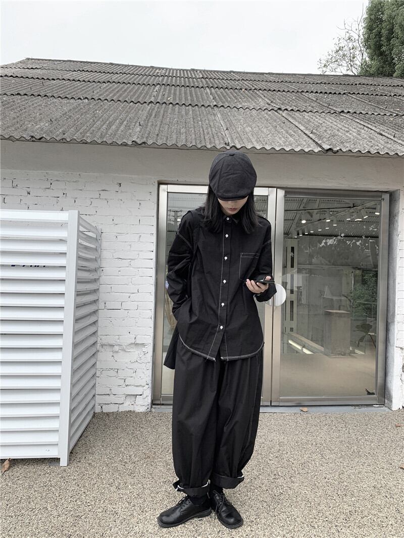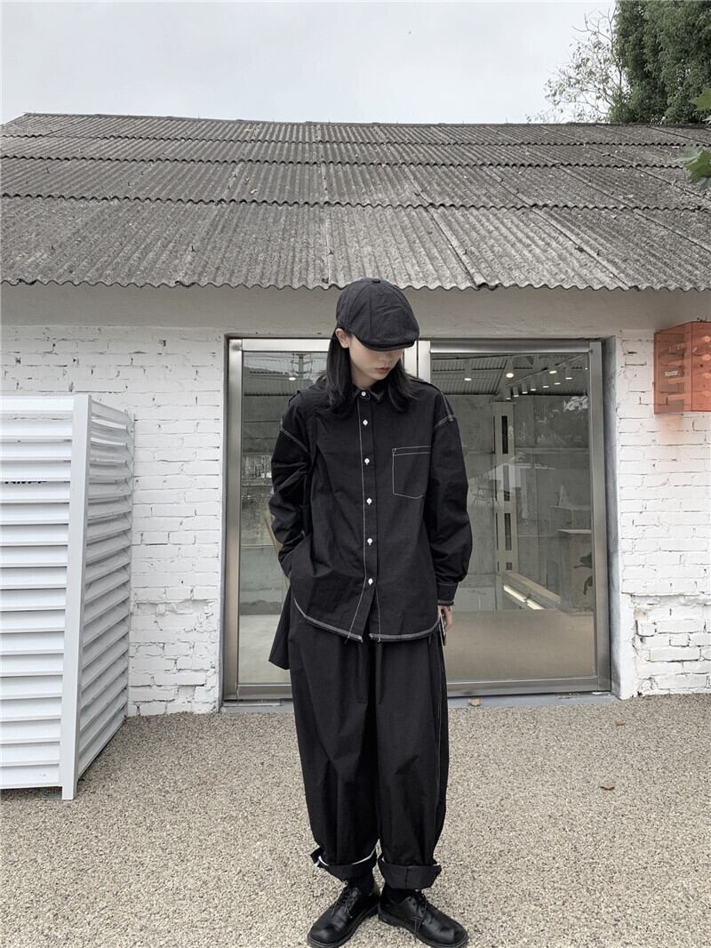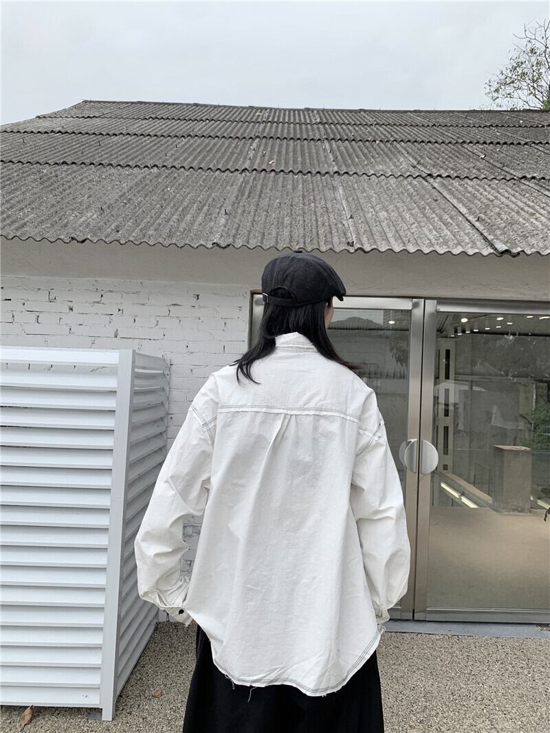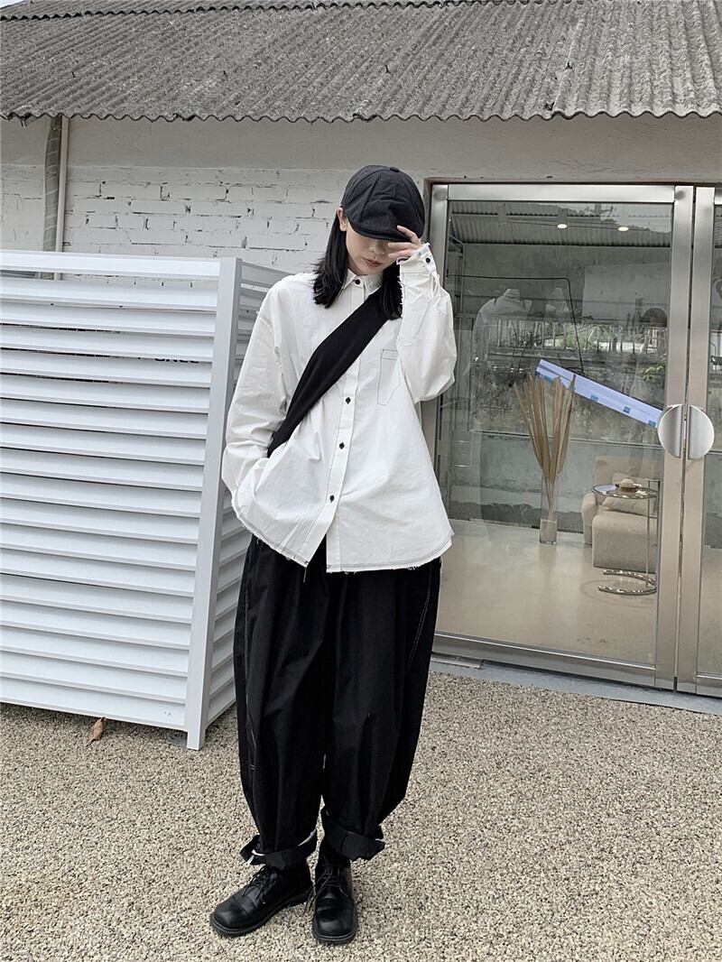 BLACK ANDWHITEダークデザインの擦り切れたシャツルーズでカジュアルなメンズとレディースの秋の新商品 ホワイト ブラック オータム 秋物 BWTB23514125702