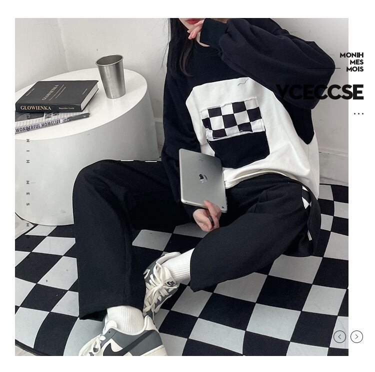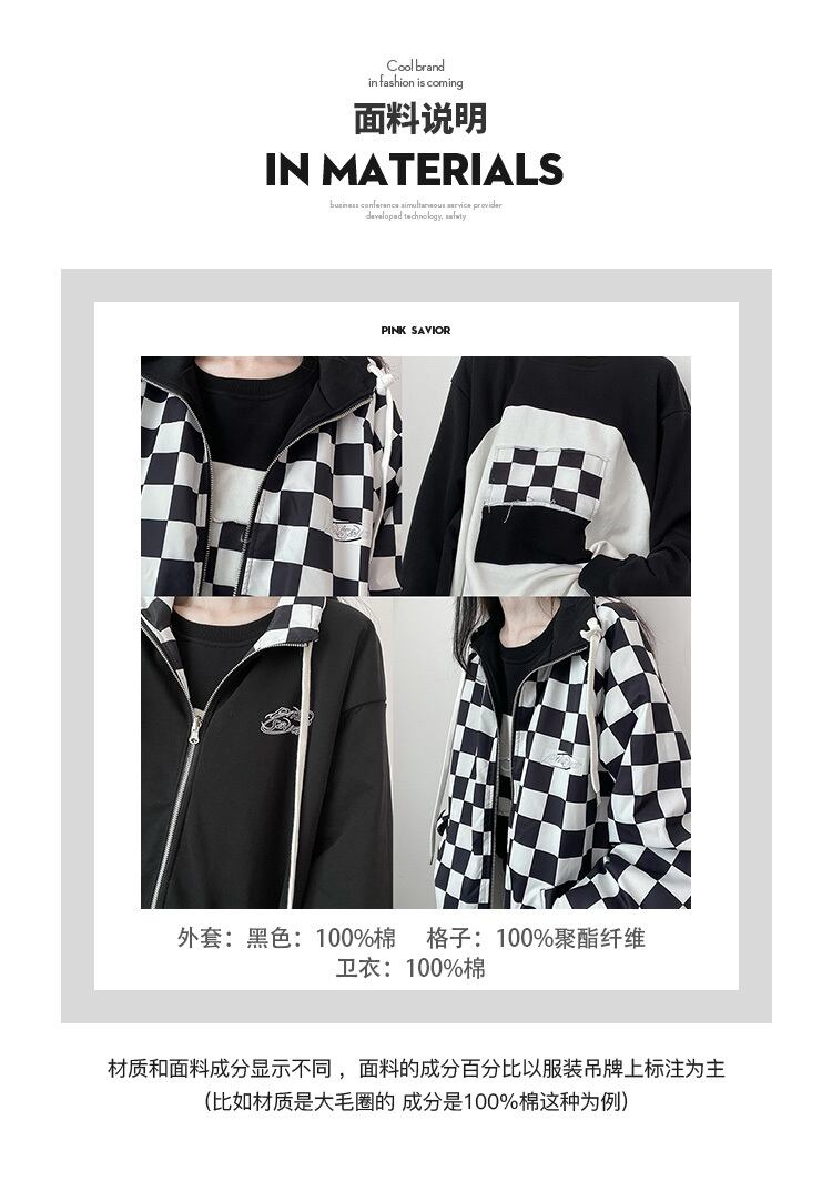 色:黒の市松模様のジャケットの内側と外側の在庫があります,在庫の黒と白のセーターをステッチする市松模様