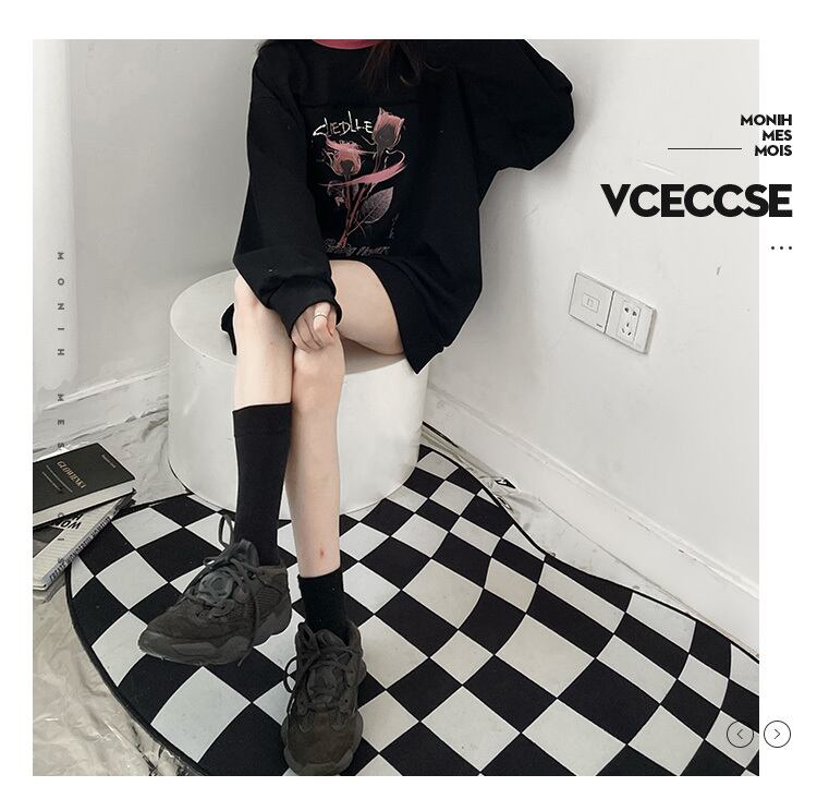 pinksavior生のエッジ装飾絵画ドライローズプリントコントラストカラーネックラインテリー秋冬セーター オータム 秋物 ウィンター 冬物 PSTB94727074275