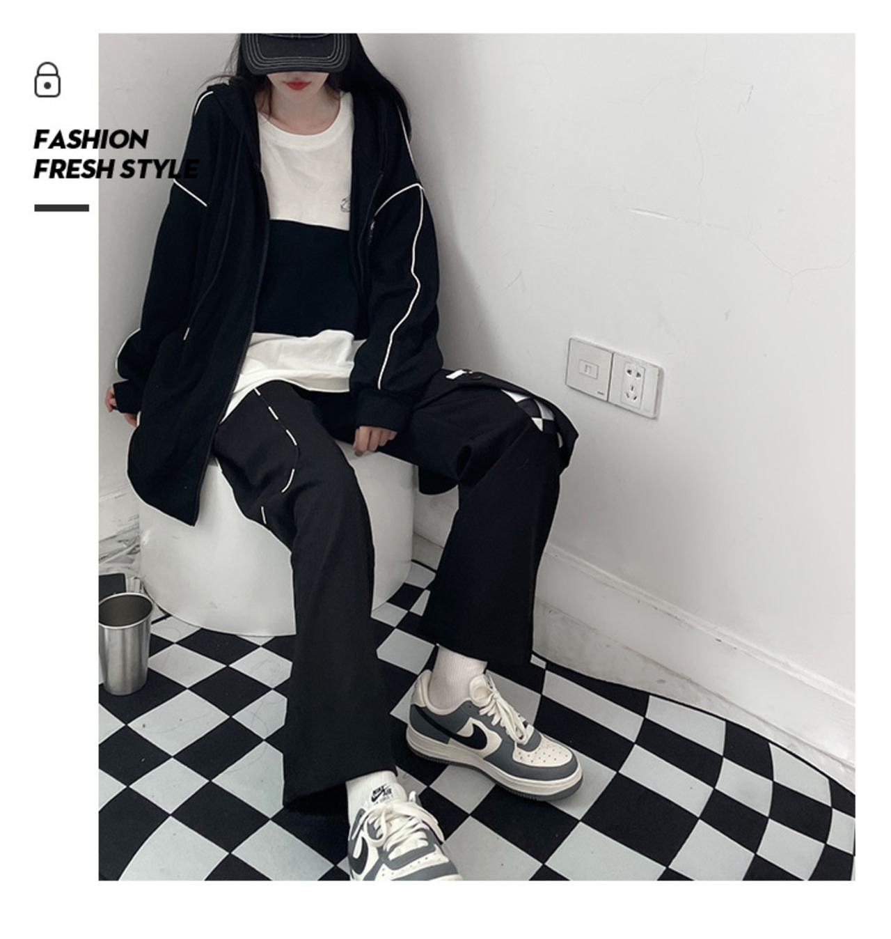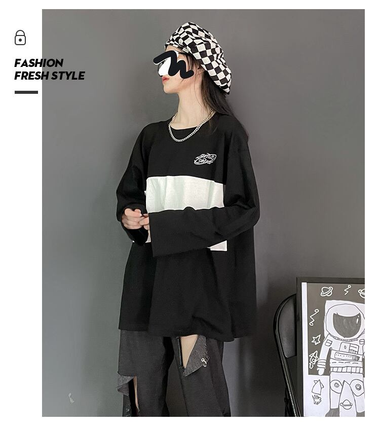 pinksaviorステッチ黒と白の灰色の秋のカジュアルスリムコットン長袖 ロング ホワイト ブラック オータム 秋物 PSTB70548038504