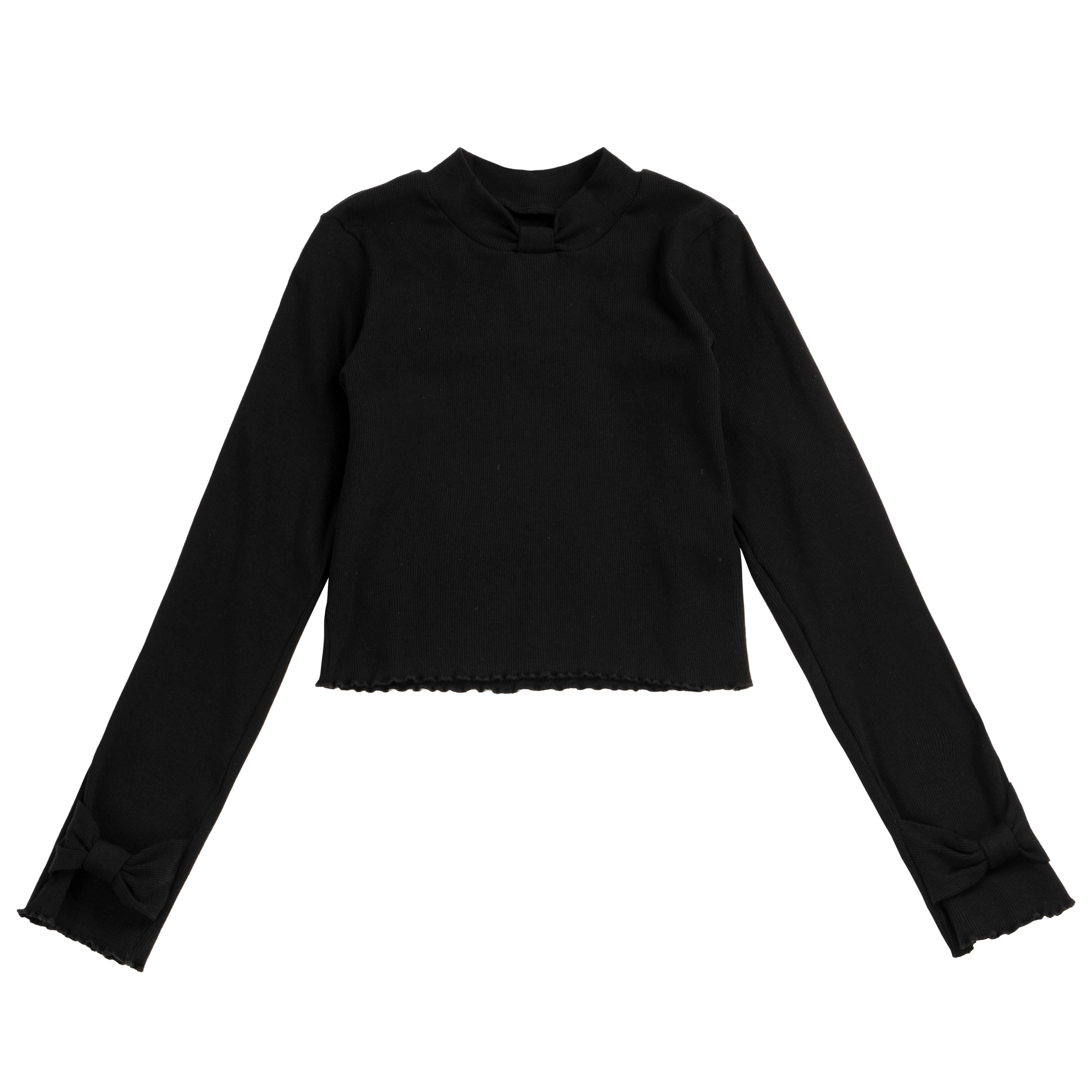 pinksavior黒と白の弓の装飾が秋と冬のハーフハイカラーのストライプ素材の長袖ボトミングシャツを計画 ロング ホワイト ブラック リボン オータム 秋物 ウィンター 冬物 PSTB42875354543
