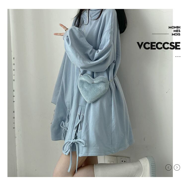 pinksaviorは綿のチェーンバッグの青と白の優しい色に加えてベルベットの秋と冬の長袖ルーズセーターが大好きです ロング ホワイト ブルー コットン オータム 秋物 ウィンター 冬物 PSTB9926075978