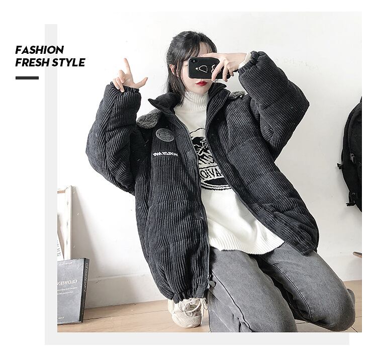 pinksavior太いコーデュロイキルティング刺?冬防風と暖かい子羊の毛皮の帽子パンゆるい綿の服 コットン 刺繍 ウィンター 冬物 PSTB9799486111