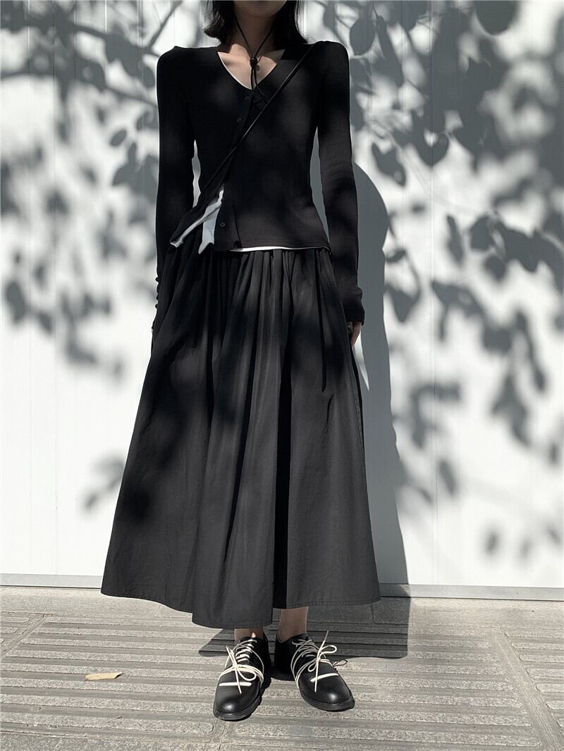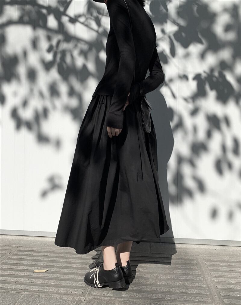 BLACK AND WHITEcetteヘビーインダストリースカートロングスカート厚手秋冬モデルAライン無地ニッチダブルレイヤー ホワイト ブラック オータム 秋物 ウィンター 冬物 ソリッドカラー BWTB91663455517
