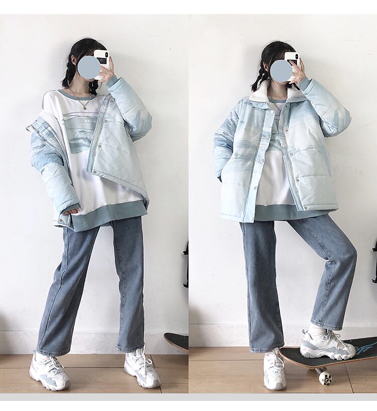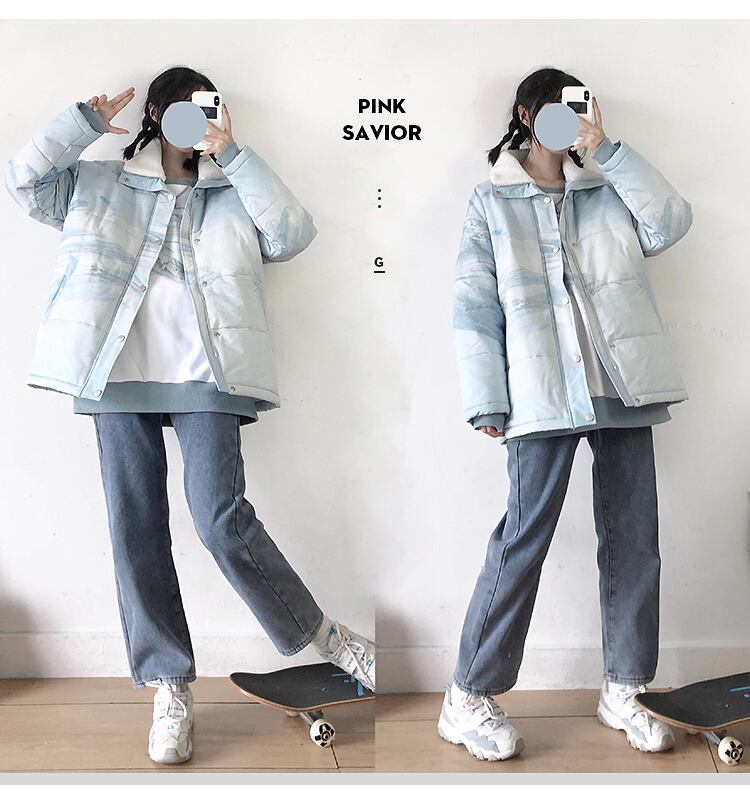 pinksavior極雪子羊の毛皮の襟厚い暖かいキルティング冬のセーター綿のスーツ コットン ウィンター 冬物 PSTB95818738827