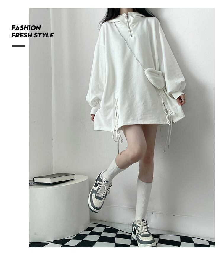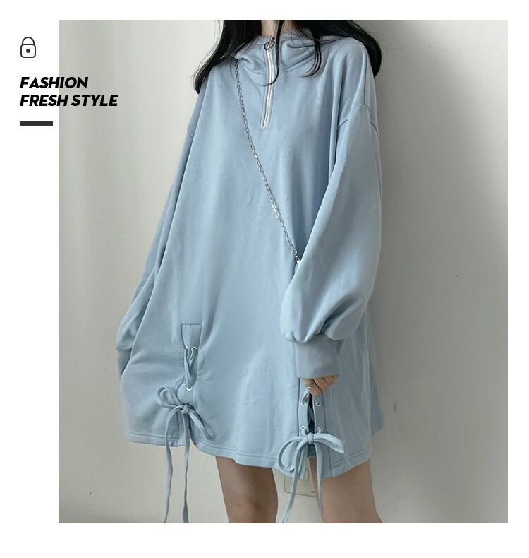 pinksavior綿のチェーンバッグの青と白の優しい色に加えてベルベットの秋と冬の長袖ルーズセーターが大好きです ロング ホワイト ブルー コットン オータム 秋物 ウィンター 冬物 PSTB69480983697