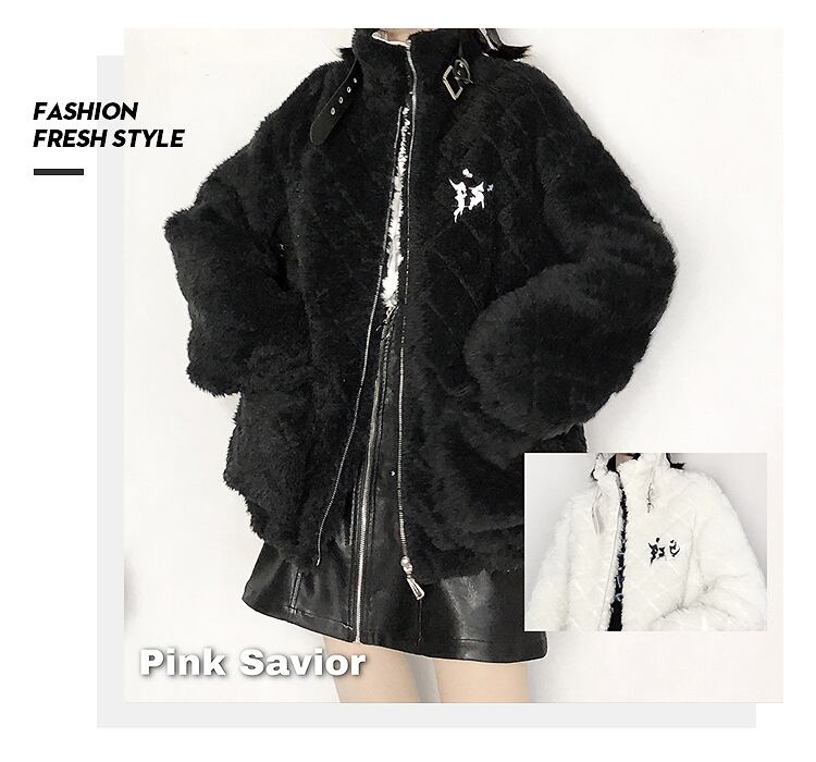 pinksavior機関車の革のバックルPSC襟の特別なクラフトウールの厚い刺繍された冬の暖かい黒と白の綿のジャケット ホワイト レッド ブラック コットン ウィンター 冬物 レザー PSTB3655781165