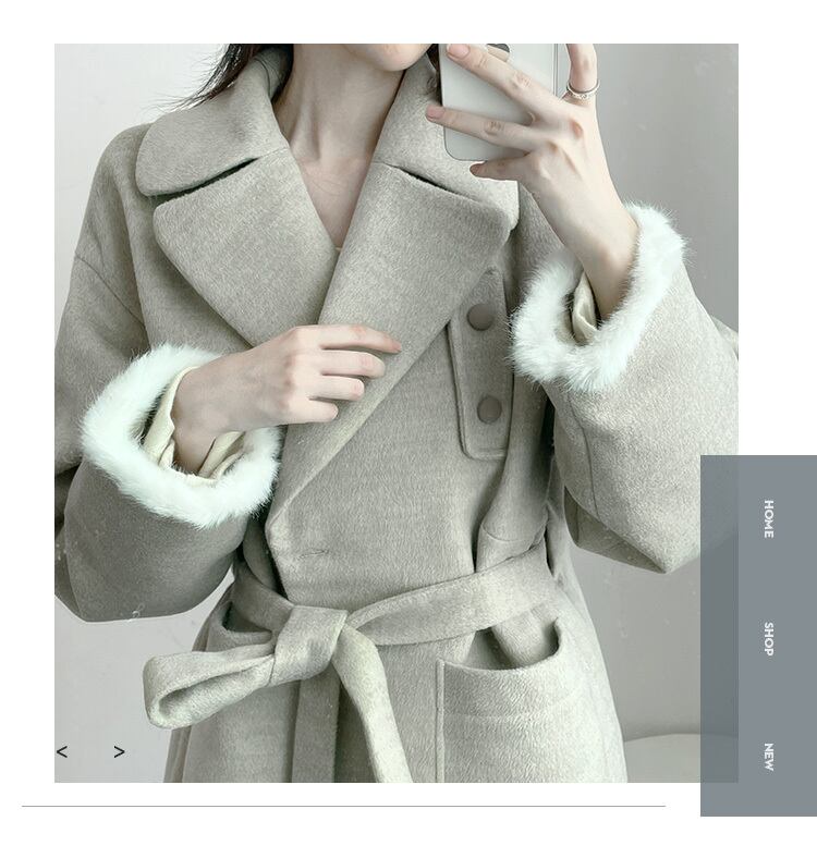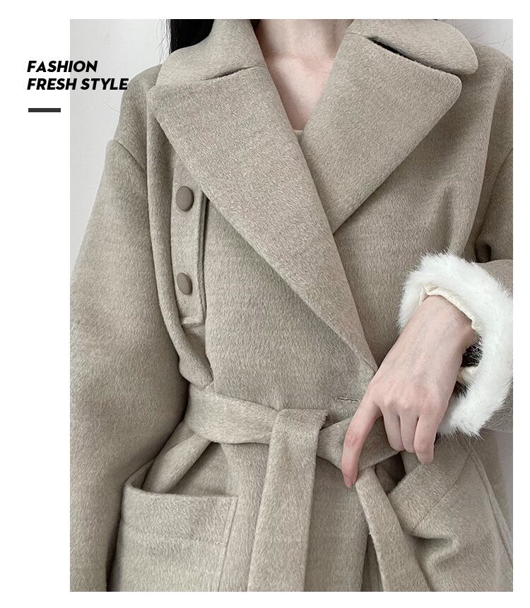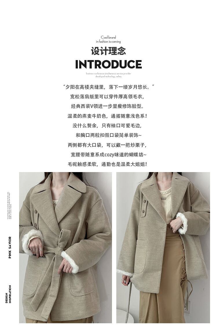 pinksaviorスーツ襟ポケット長袖通勤無地小麦色ブラシストリップ装飾秋と冬のウールの布 ロング オータム 秋物 ウィンター 冬物 ソリッドカラー PSTB24177720798