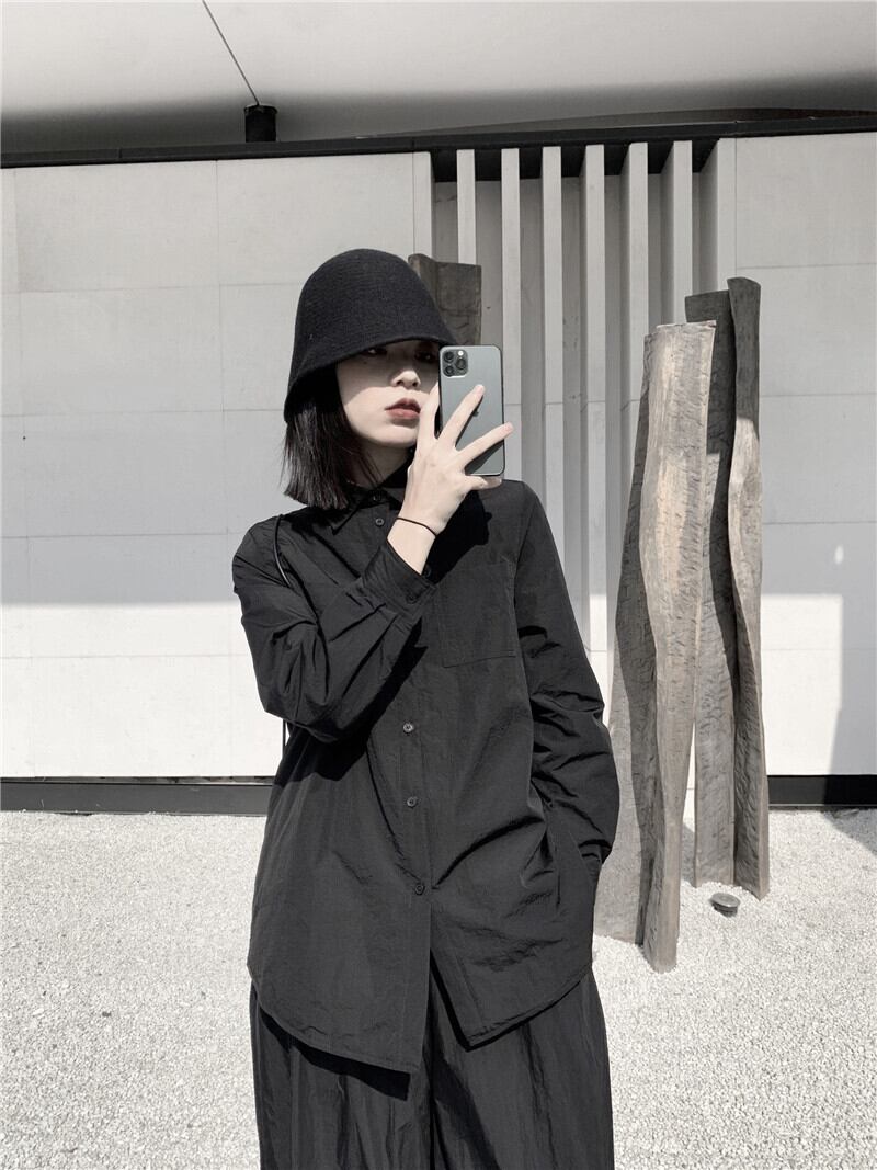 黒と白のダークブラックのキルティングシャツ、暖かくて厚い女性のルーズカジュアルな長袖 ロング ホワイト BWTB73413082707