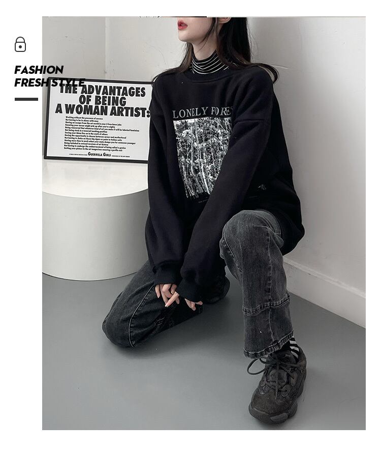 pinksaviorグラフィティエストプラスベルベット厚手のラウンドネックフード付きウィンターパールベルベットカジュアル厚手コットン 冬物 Oネック 真珠 PSTB40852555857