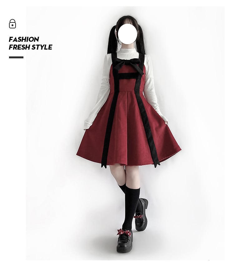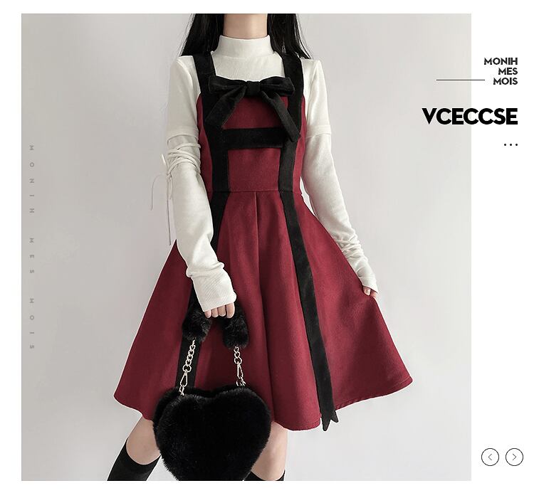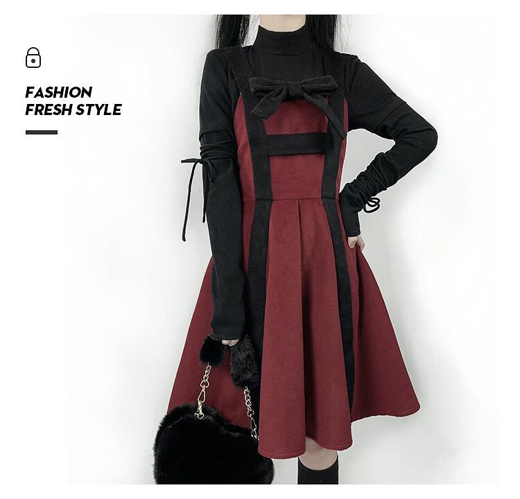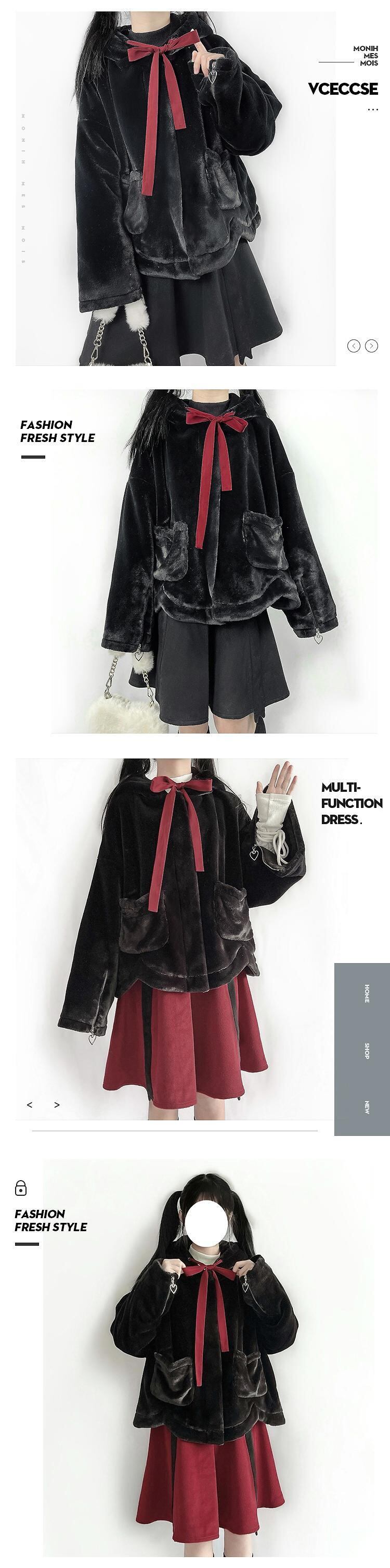 pinksavior(在庫あり)Fantasy Night Red and Black Bow Half Skirt Fur Jacket 2021 Winter ピンク レッド ブラック リボン ウィンター 冬物 スカート PSTB54536876291