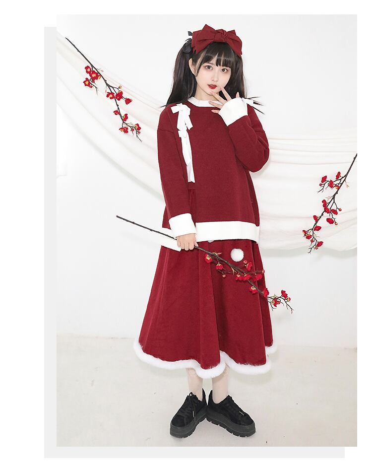 色:ホワイトウールコート,赤いスカート,赤いセーター,赤いウールのコート,レッドワイドレッグパンツ,黒スカート,黒いセーター,黒いズボン