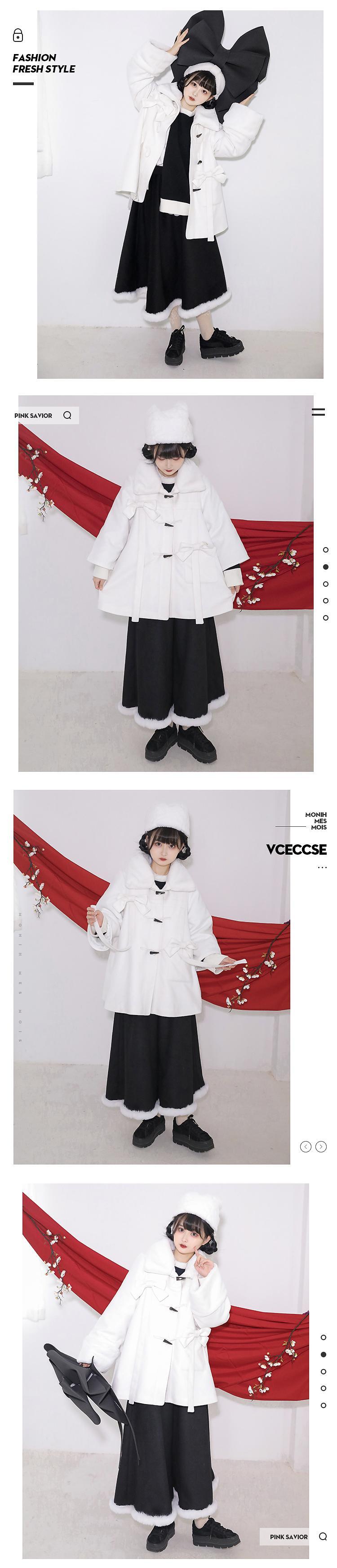 pinksavior(在庫あり)ピーチピンクブラック冬の厚みのあるちょう結びウールコートハーフスカートスーツ リボン ウィンター 冬物 PSTB61098527940