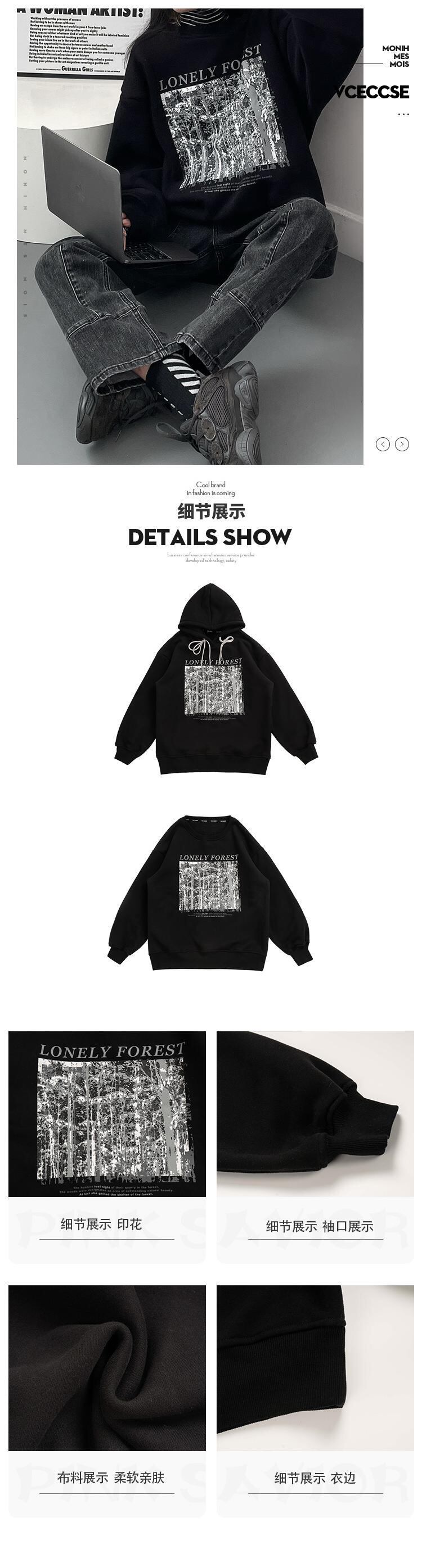 色:ブラックラウンドネック,黒のフード付き