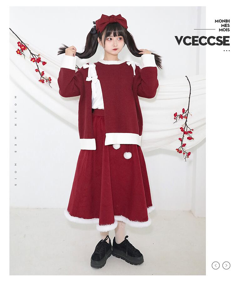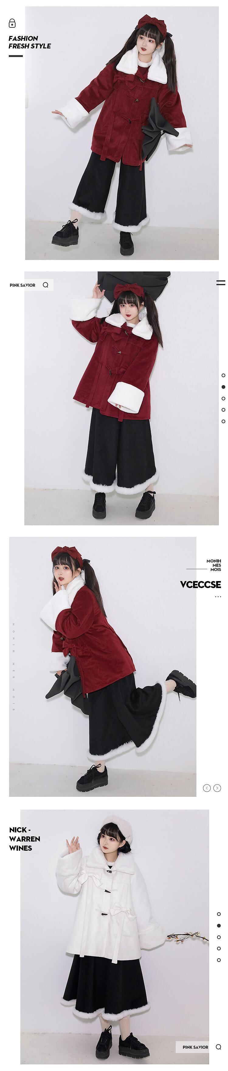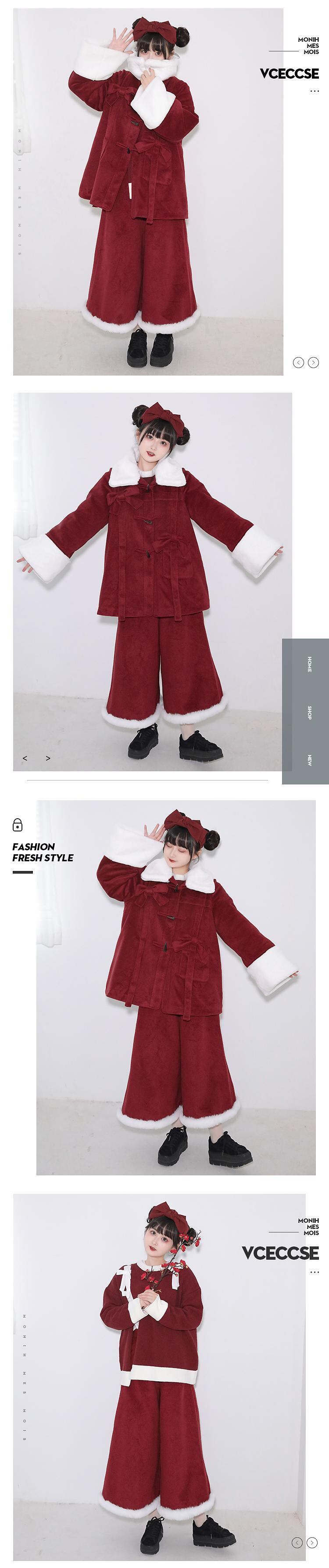 色:ホワイトウールコート,赤いスカート,赤いセーター,赤いウールのコート,レッドワイドレッグパンツ,黒スカート,黒いセーター,黒いズボン