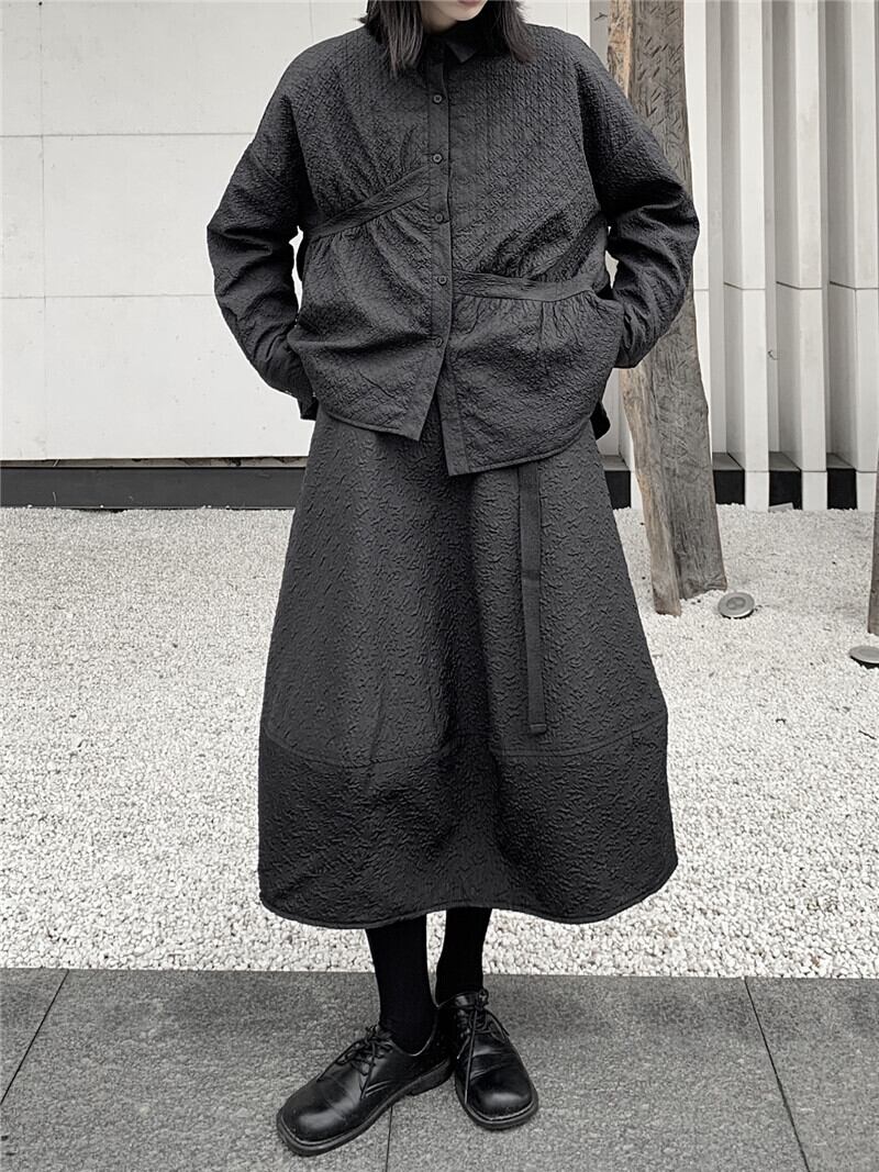 小さな菊のデザイン生地、ダークニッチシャツ、女性の長袖非対称デザイン、キルティングの厚みのある冬の新しいスタイル ロング ウィンター 冬物 BWTB22391216482