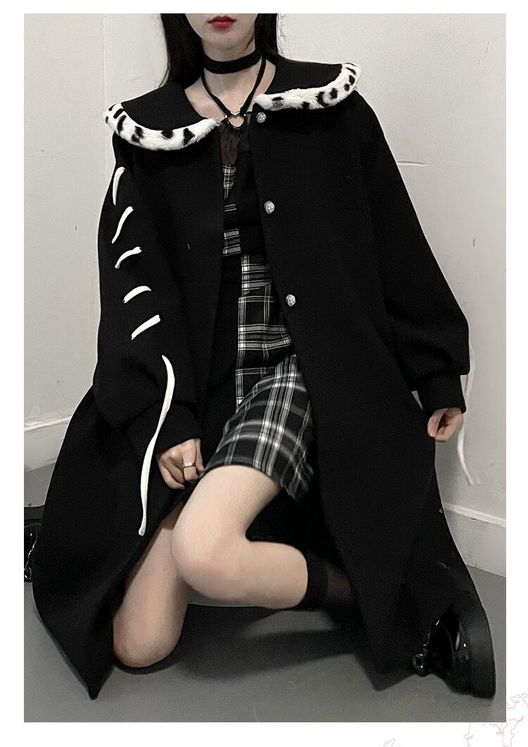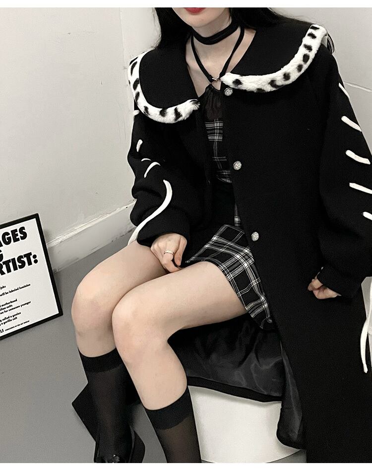 pinksaviorブラックスウィートブラシストリップステッチロングウールクロス+チェック柄ネクタイドレス秋冬デザインセンスセット 大人ガーリー キュート カジュアル オータム 秋物 ウィンター 冬物 PSTB95296635349