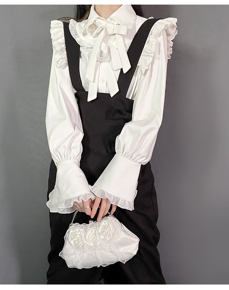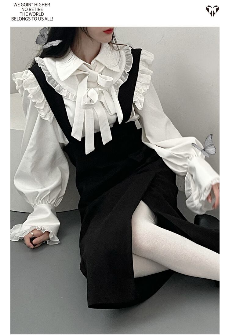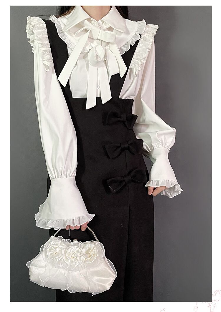 pinksaviorヘップバーンスタイルのエレガントなレースシャツフィッシュテールl秋冬の立体ボウベビーバッグロングスカート リボン オータム 秋物 ウィンター 冬物 PSTB50891003622