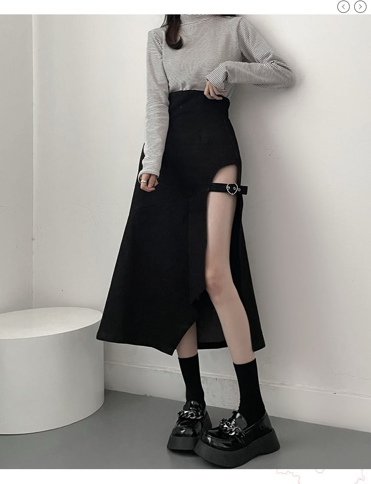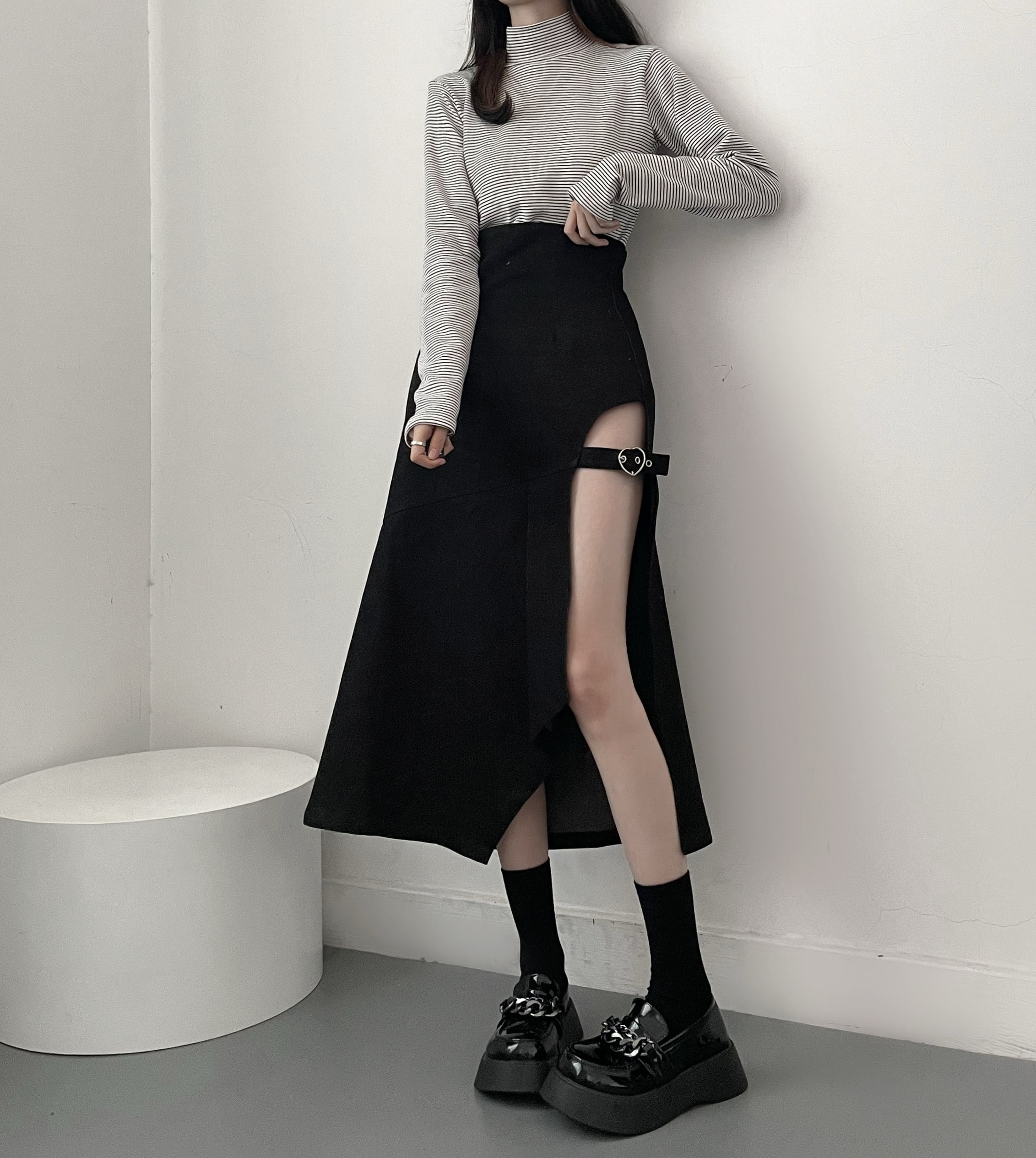 pinksaviorデニムイレギュラーラブアジャストボタンミドル丈マーメイドスカートハーフスカート PSTB81825064054